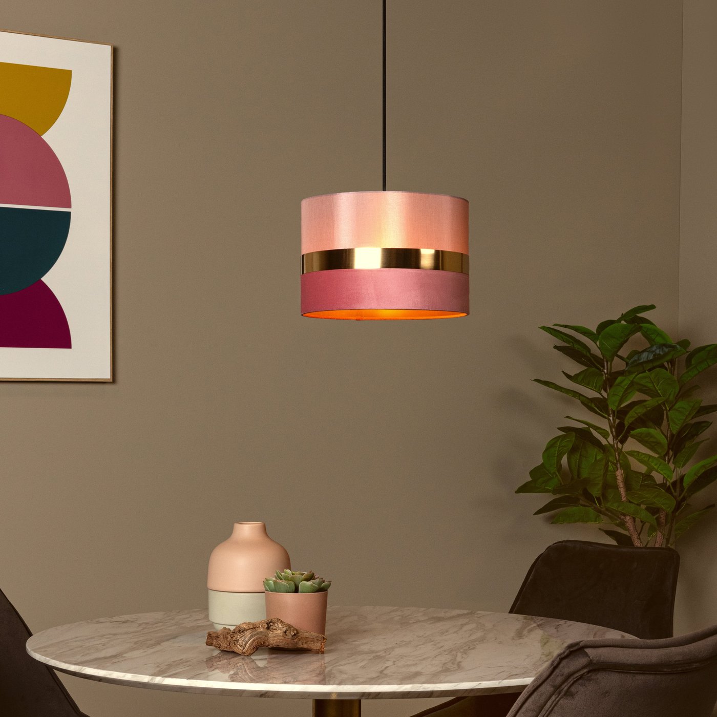 подвесной светильник с цилиндрическим абажуром розового оттенка
