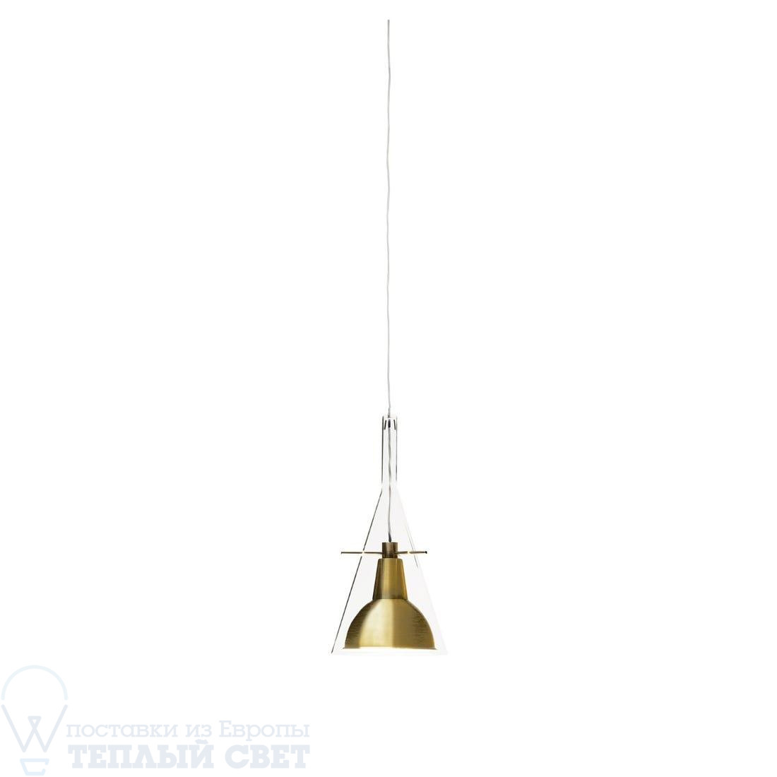 🆔 Подвесной светильник с прозрачным абажуром в форме конуса латунь, прозрачный Flute by Fontana Arte