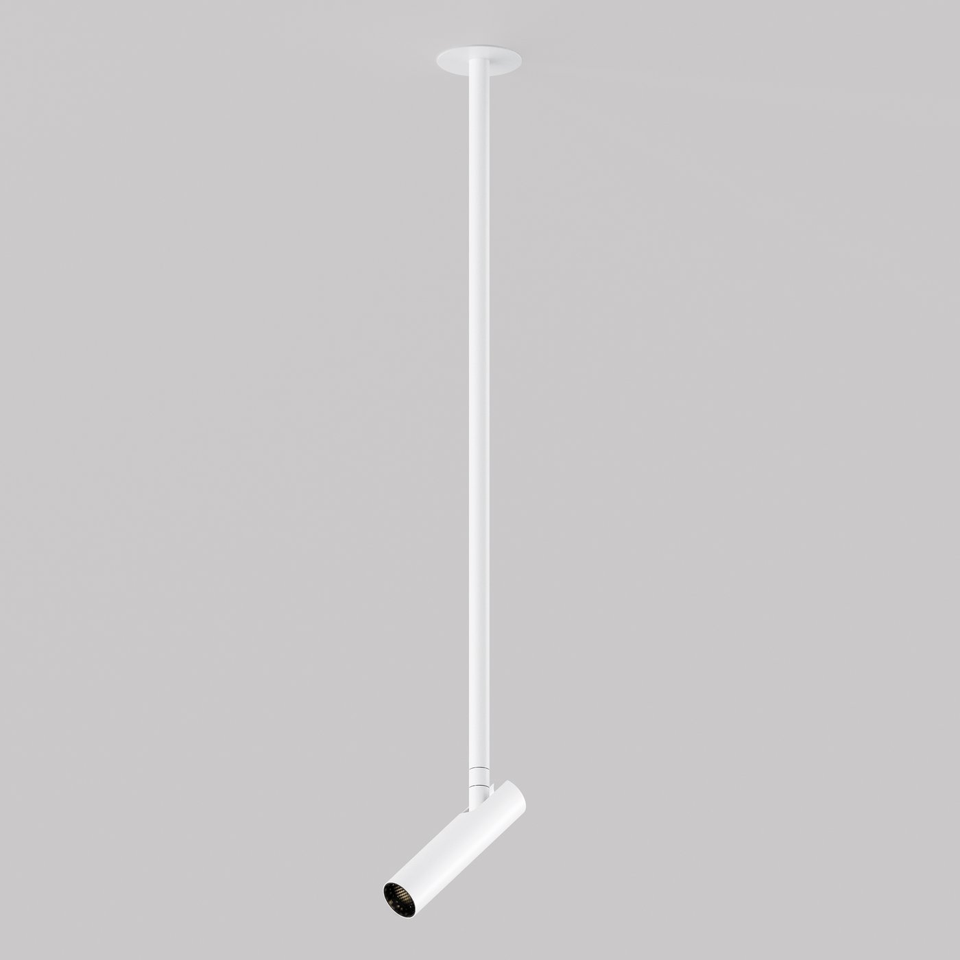 Подвесной светильник с узким цилиндрическим корпусом предназначен для точечной подсветки и встраивается в потолок с выводом на жёсткой штанге. В коллекции Focus T от Maytoni алюминиевый корпус с утопленным LED-источником формирует аккуратный направленный луч, а поворотный механизм позволяет изменять угол света движением руки. Световой поток 340 лм при мощности 6 Вт и угле рассеивания 40° создаёт собранное световое пятно, подходящее для акцентного света над столом, барной стойкой или экспозицией. Тёплая температура 3000 К и индекс цветопередачи Ra 90 обеспечивают естественные оттенки предметов без искажения цвета. Возможность подключения к драйверам DALI или Triac позволяет реализовать диммирование и сценарное управление освещением. Диаметр монтажного отверстия 55 мм упрощает интеграцию в подвесные потолки в сухих помещениях с защитой IP20.