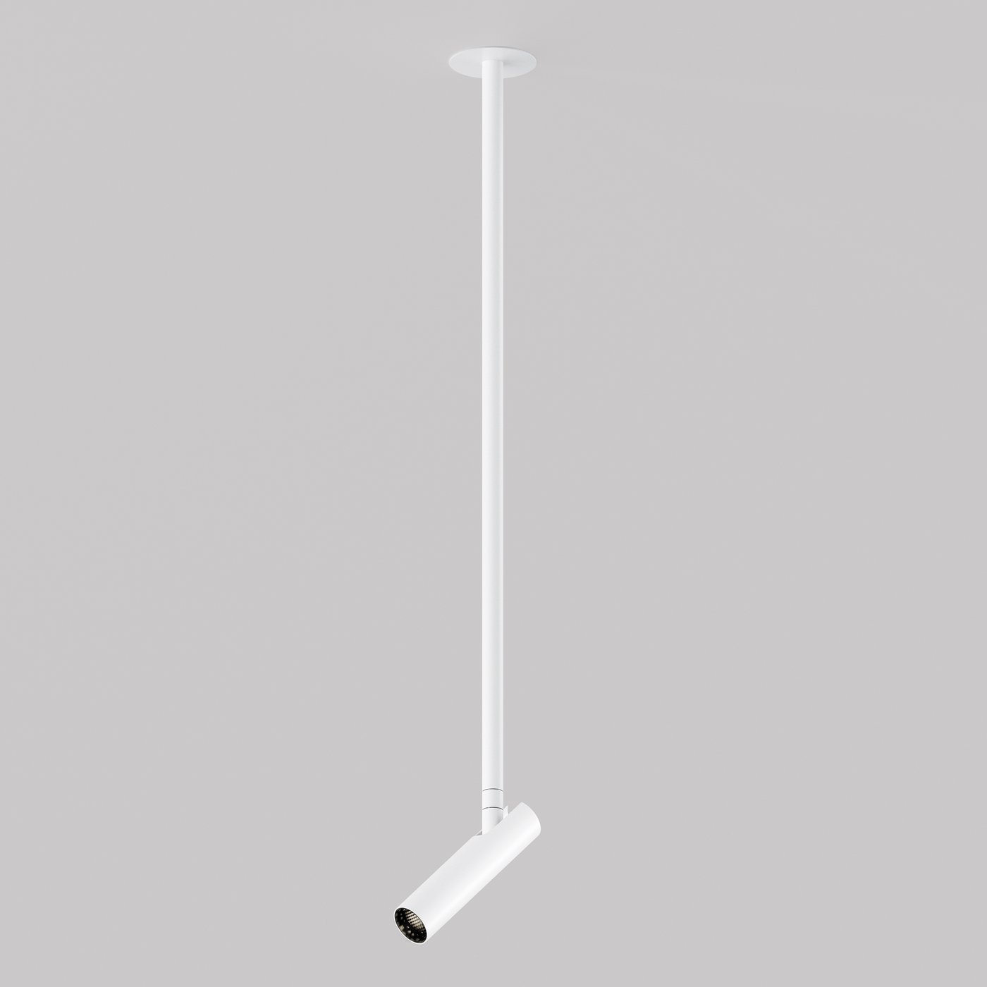 Подвесной светильник с тонким цилиндрическим корпусом и утопленным источником света предназначен для точечной подсветки отдельных зон. В коллекции Focus T от Maytoni модель выполнена в белом алюминиевом корпусе с жёстким основанием и поворотным механизмом, позволяющим направлять луч после установки. Подвес работает как акцентный свет над барной стойкой, столом или в витринной зоне: при изменении положения головы световое пятно можно сместить, не меняя точки крепления. Световой поток 410 лм при мощности 6 Вт формирует локальную подсветку без избыточной яркости, а угол рассеивания 40° обеспечивает чётко очерченное пятно. Нейтральная температура 4000 К подходит для рабочих сценариев, индекс цветопередачи Ra 90 сохраняет естественные оттенки материалов. Встраиваемый монтаж с круглым отверстием 55 мм позволяет аккуратно интегрировать подвес в потолочную плоскость, а степень защиты IP20 ориентирует модель на сухие помещения.