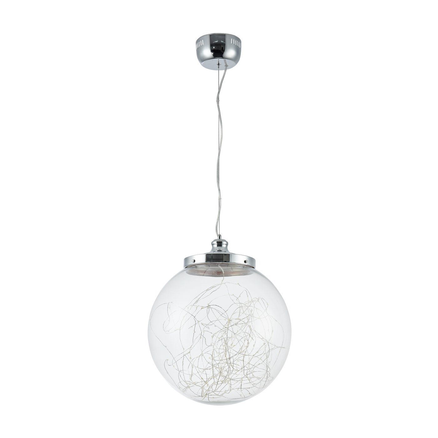 подвесной светильник с шарообразным плафоном из хромированного стекла