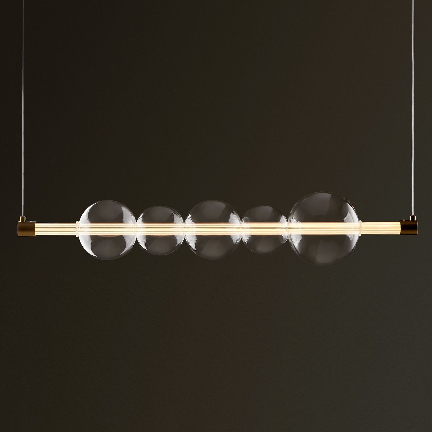 В коллекции Glaze сливаются воедино современные тенденции. Светильники воплощают концепцию "невидимого света", где светодиодный источник скрыт в горизонтальной стеклянной трубке. Этот прием рассеивает свет , что позволяет ему раствориться в пространстве парящих в воздухе сферических плафонов из прозрачного стекла. Их различные размеры и расположение напоминают капли света, застывшие в невесомости. Лаконичная металлическая арматура в цвете латуни подчеркивает минималистичный дизайн светильников, делая их хорошим дополнением к интерьеру в стиле модерн, лофт и неоклассика. Регулируемая высота позволяет адаптировать светильники к помещениям с низкими потолками. Теплый свет с цветовой температурой 3000K окутывает помещение. Поток лучезарного света, исходящий от светильников Glaze, подобен летнему солнцу, наполняет пространство энергией.