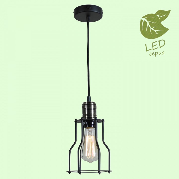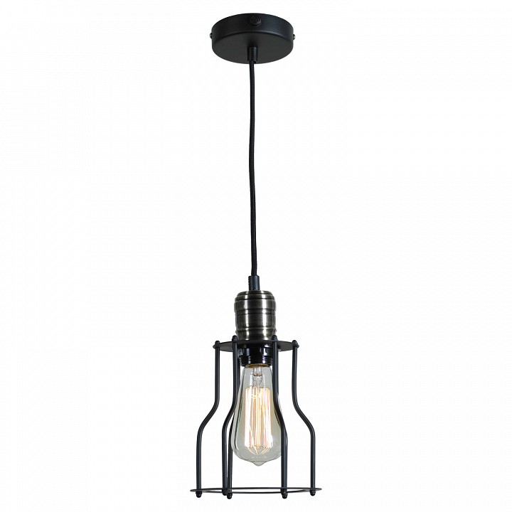 подвесной светильник с открытой лампой в металлическом каркасе в стиле лофт