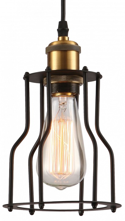 🆔 Подвесной светильник с открытой лампой в металлическом каркасе в стиле лофт бронза, черный Baldwin by Lussole
