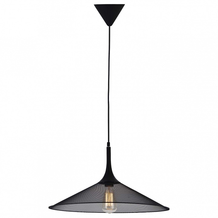 подвесной светильник с ажурным металлическим плафоном конической формы черного цвета