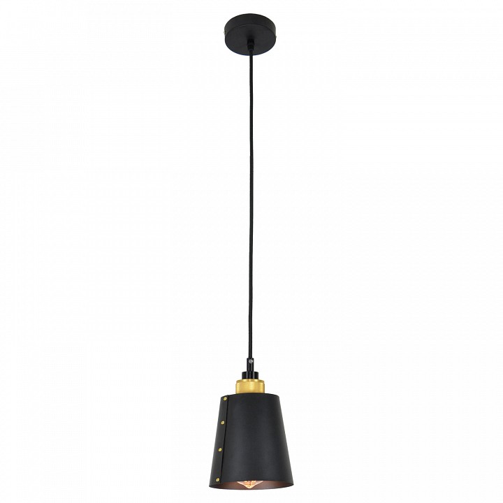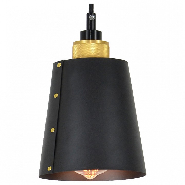 подвесной светильник с металлическим корпусом черного цвета и золотистой внутренней отделкой