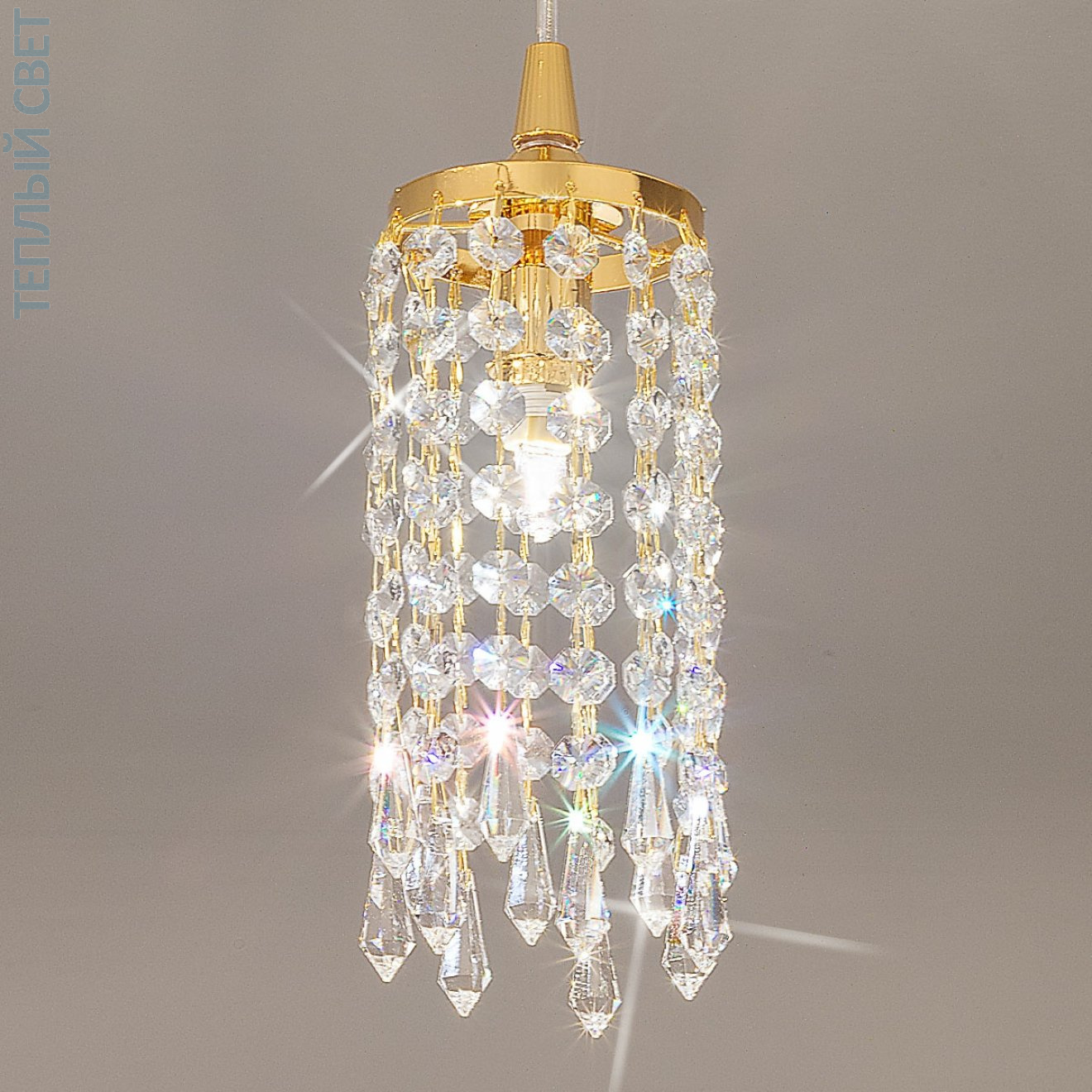 подвесной светильник цилиндрической формы с подвесными кристаллами золото