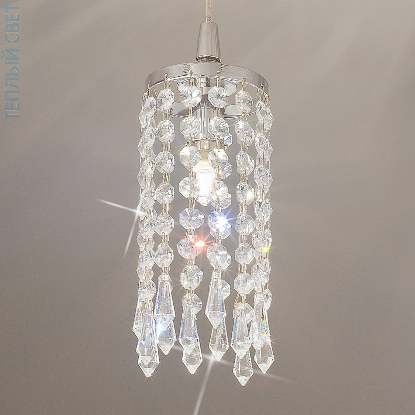 подвесной светильник цилиндрической формы с подвесными кристаллами хром