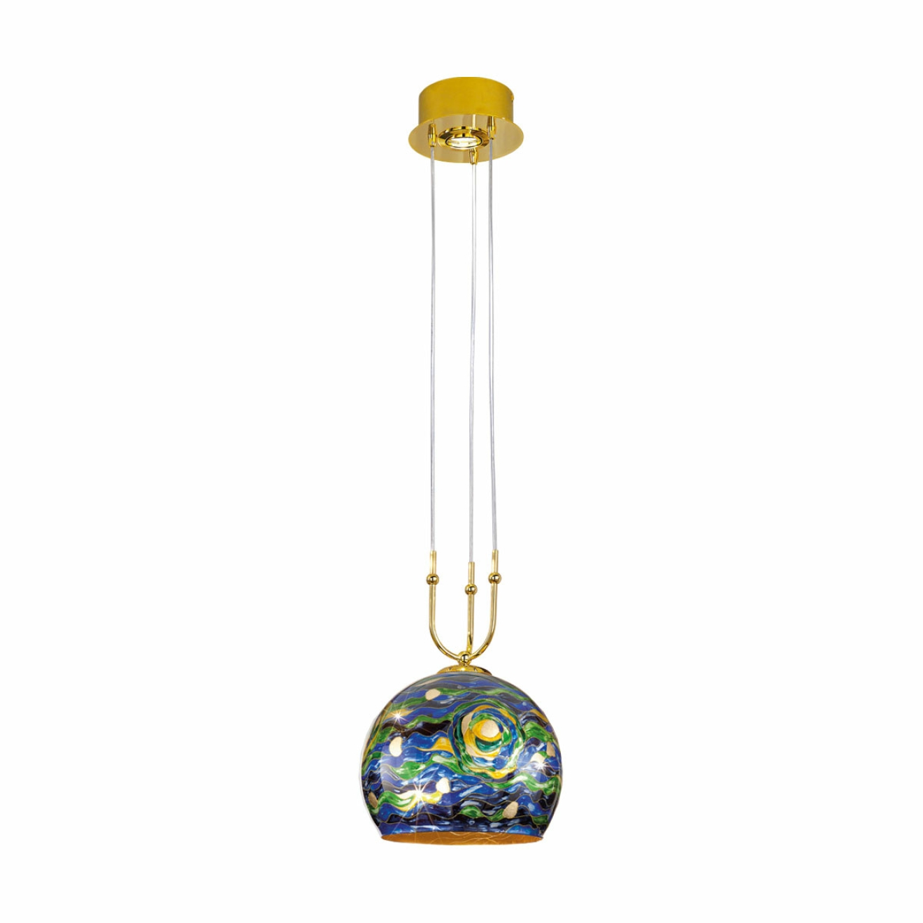 Moonstruck: Golden and silver globes and bowls with finest handpainted decors, creating fascinating flair. Brilliant eye-catchers and wonderful mood lighting, with or without sparkling crystals. LUNA lights up your life! Our hand-painted AQUA BLUE decor shows fanciful motifs of moving water in harmony with finest leaf gold. Each piece of art is unique.