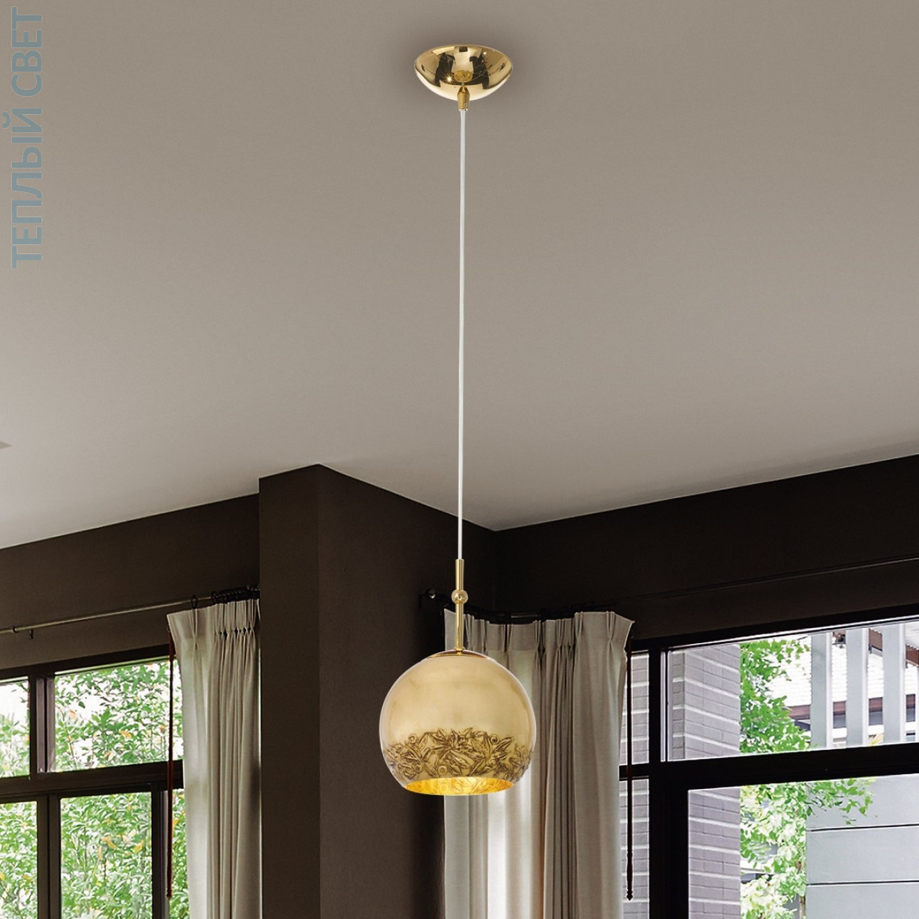 подвесной светильник с круглым стеклянным плафоном золотистого цвета