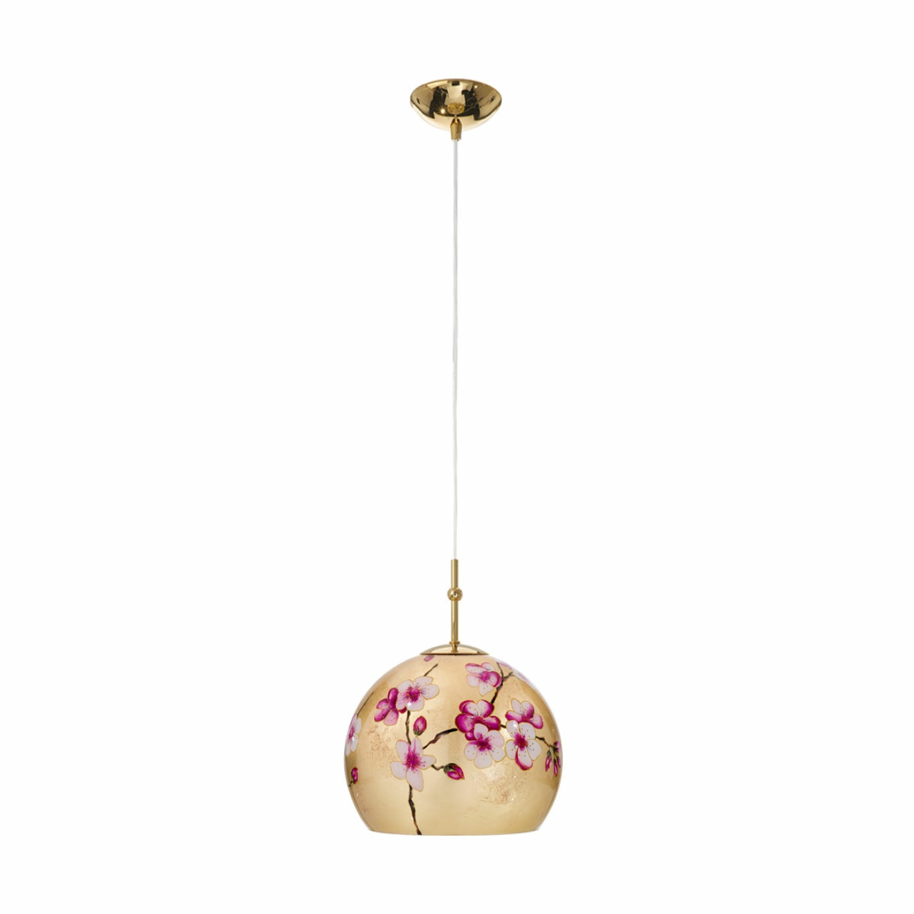 Moonstruck: Golden and silver globes and bowls with finest handpainted decors, creating fascinating flair. Brilliant eye-catchers and wonderful mood lighting, with or without sparkling crystals. LUNA lights up your life! Decor PRIMAVERA GOLD: hand painted cherry blossoms on finest leaf gold.