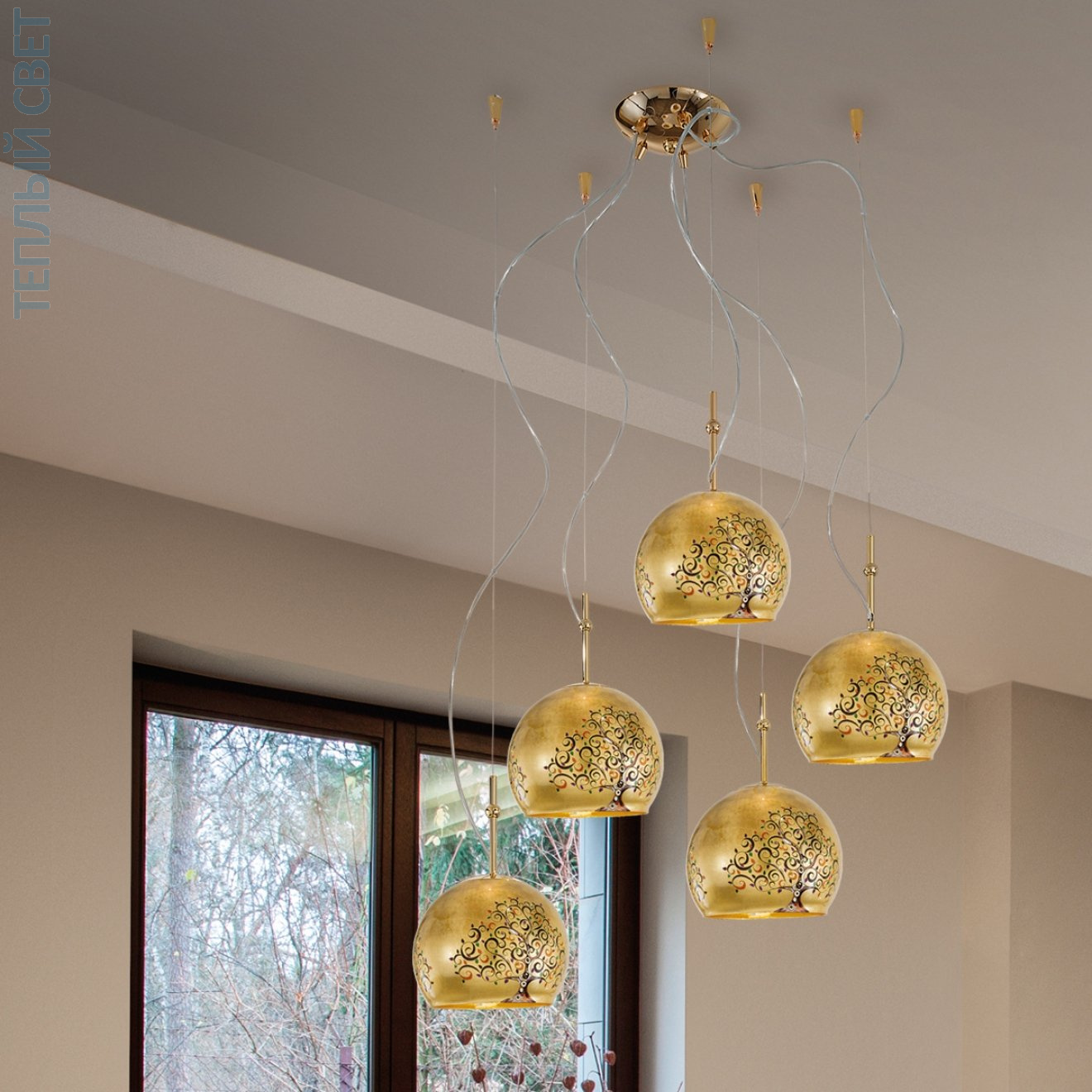 Золото 24 карата, Ø100cm, Высота 200cm, 5 ламп, E27
