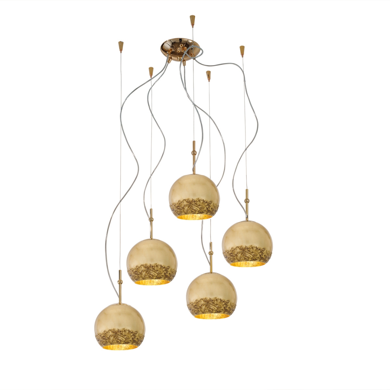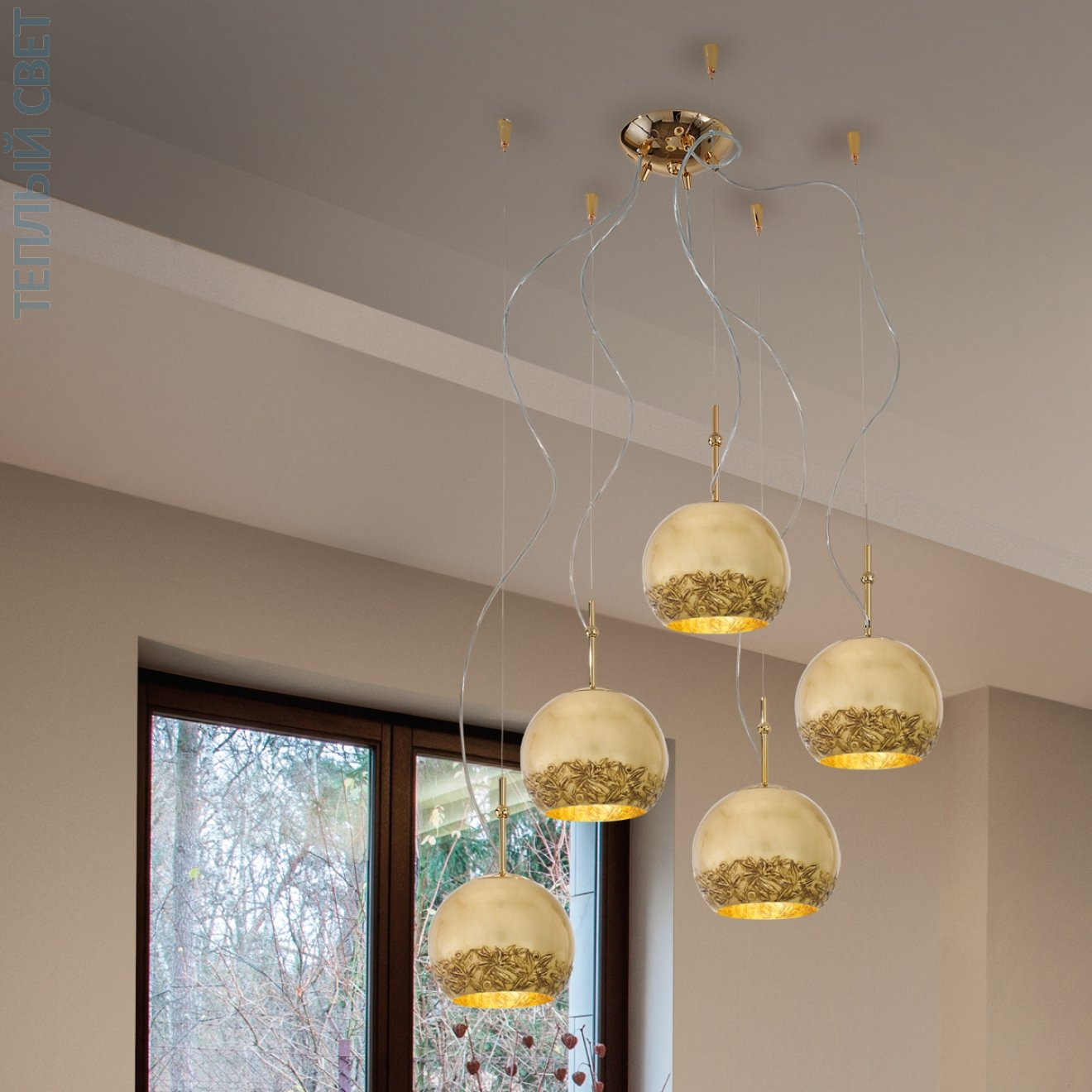 🆔 Подвесной светильник с пятью стеклянными шарами золотой Luna by Kolarz