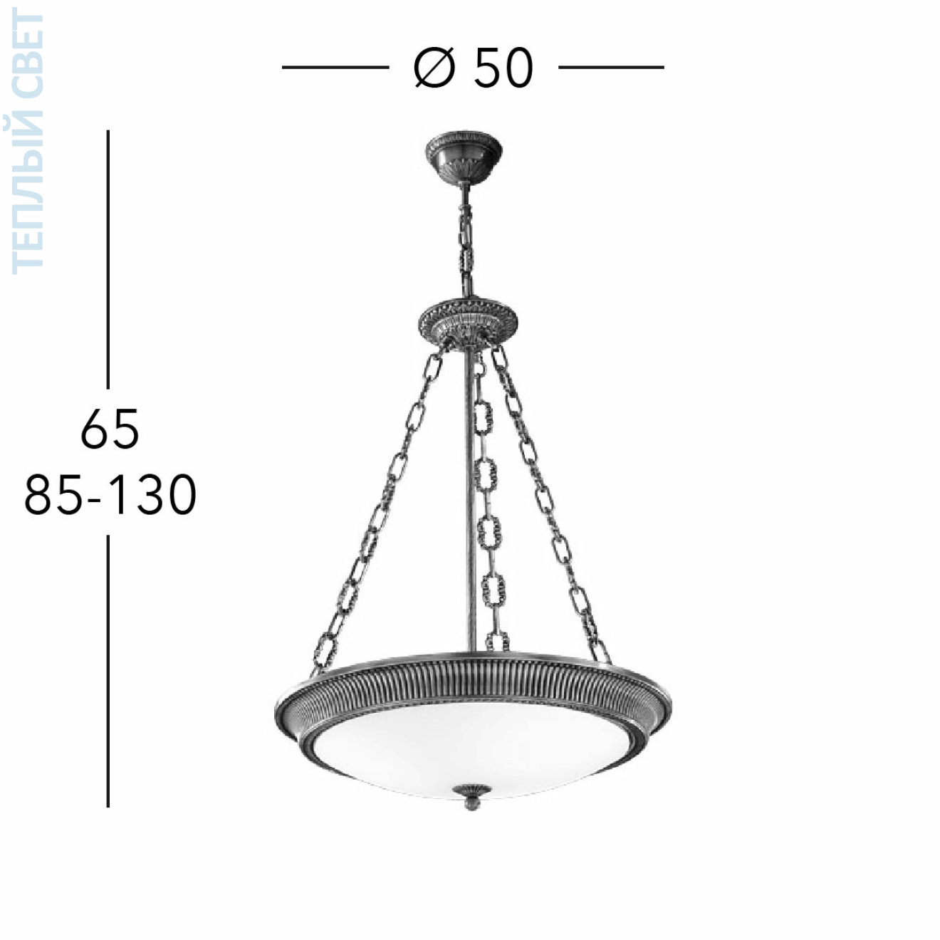 Состаренная латунь, Белый, Ø50cm, Высота 65cm, Мин. высота 85cm, Макс. высота 130cm, 3 лампы, E27