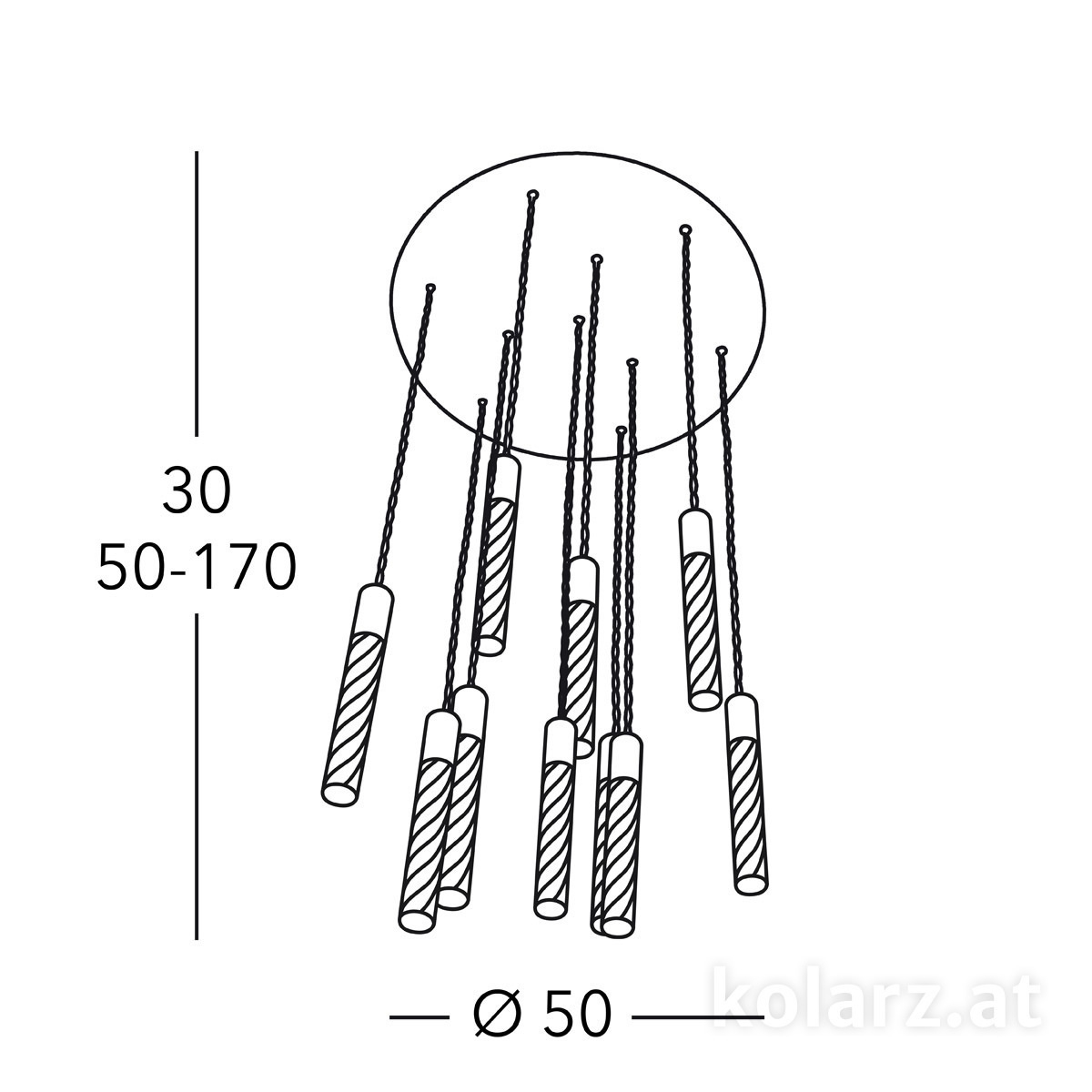 Подвесной светильник Mobile Murano воспринимается как лёгкая структура из отдельных цилиндрических подвесок, где тонкий металл сочетается с закрученным муранским стеклом, формируя вертикальные линии в пространстве. При движении под ним взгляд скользит вдоль стеклянных элементов, а поворот тела и изменение ракурса открывает игру света внутри каждого цилиндра, создавая ощущение солнечных бликов на стенах и мебели. Регулируемая длина подвесок позволяет адаптировать композицию к разной высоте помещения, делая свет локализованным над столом или распределённым в зоне отдыха. Яркость LED-ламп раскрывает текстуру стекла, а янтарные оттенки смягчают свет, формируя тёплую визуальную среду. Металлическая основа обеспечивает устойчивость и аккуратную фиксацию каждой подвески, при этом каждая из них остаётся подвижной, что позволяет создавать динамику и изменять композицию в процессе эксплуатации. Светильник работает как ансамбль из десяти отдельных источников, где каждый элемент управляет пространственным светом, формируя мягкие, направленные пучки и отражения, которые живо реагируют на интерьер.