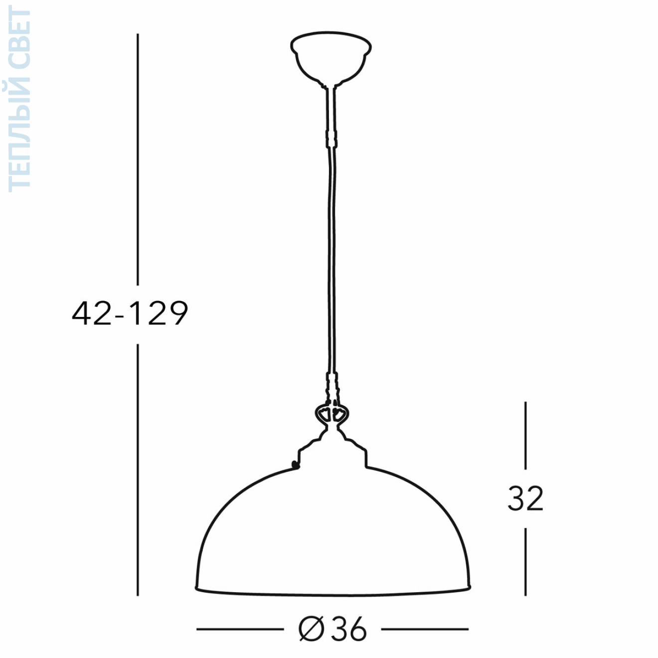 Состаренная латунь, Ø36cm, Высота 32cm, Мин. высота 42cm, Макс. высота 129cm, 1 лампа, E27