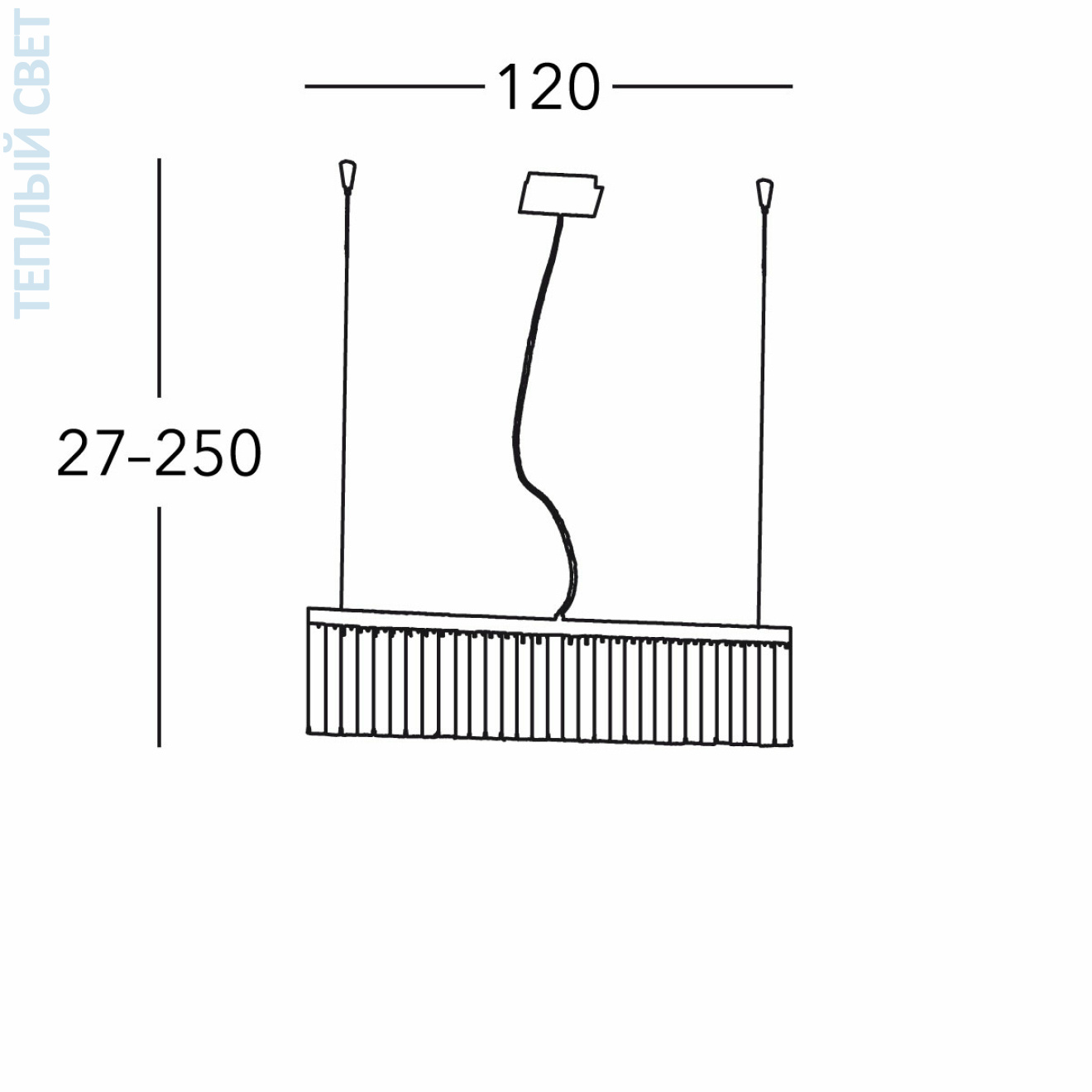 Хром, Ширина 120cm, Высота 20cm, Мин. высота 27cm, Макс. высота 250cm, 7 ламп, G9