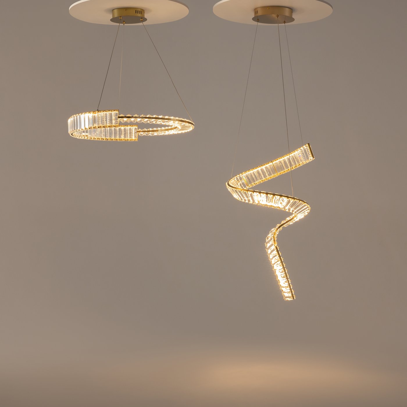 Яркий выразительный облик серии Krone - это новый взгляд на актуальные дизайнерские тренды. Главная особенность – асимметричное расположение хрустального декора. Трендовый прием позволяет получить интересный светотеневой рисунок, добавляет дизайну уникальность. Металлическая арматура латунного цвета обрамляет декоративные элементы подобно ювелирному украшению, создавая праздничный образ. LED-источник света обеспечивает равномерную яркую подсветку, подчеркивая оригинальный силуэт. Высокий индекс цветопередачи 90Ra не искажает восприятие оттенков. В серию входят подвесные модели различного диаметра и с разным количеством ярусов, подвесной светильник в виде спирали, а также вытянутые по горизонтали подвесные светильники разной длины. Эклектичный дизайн актуален как для современных, так и классических интерьеров: праздничного ар-деко, неоклассики, фьюжн, сдержанного контемпорари или mid-century.