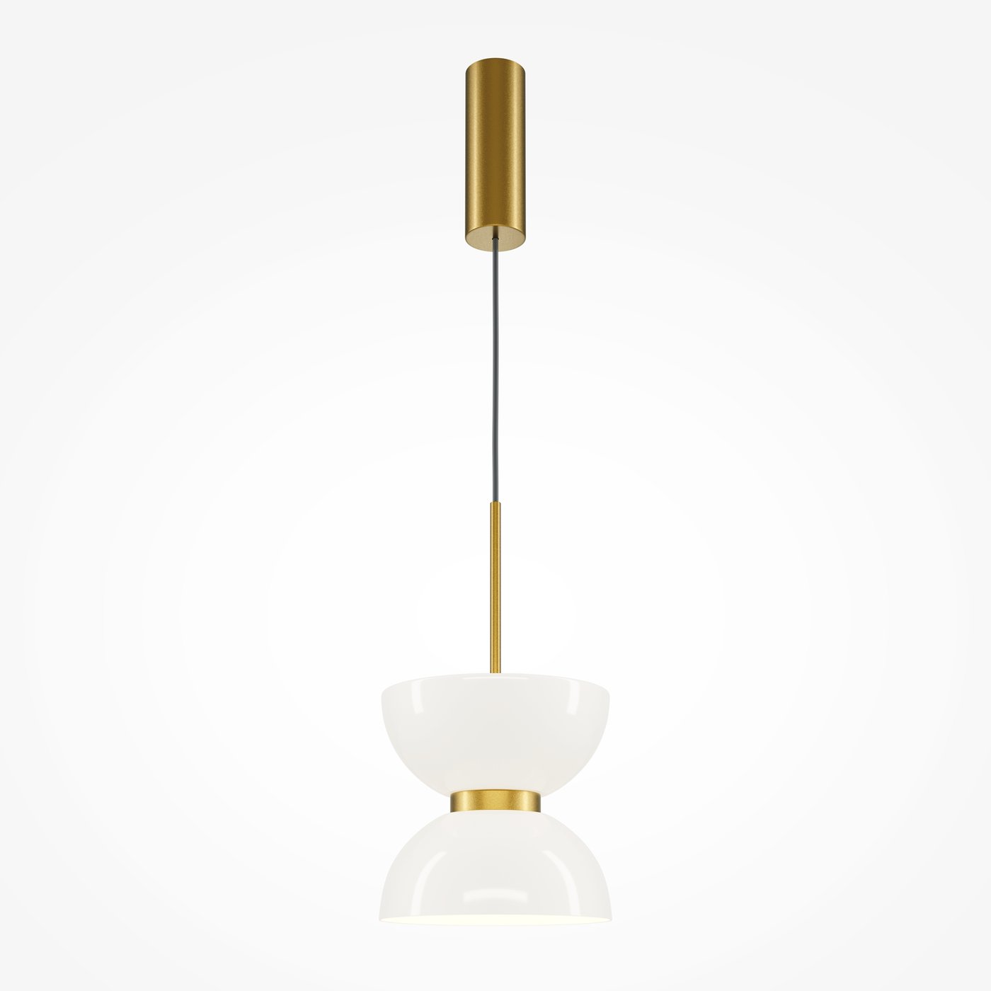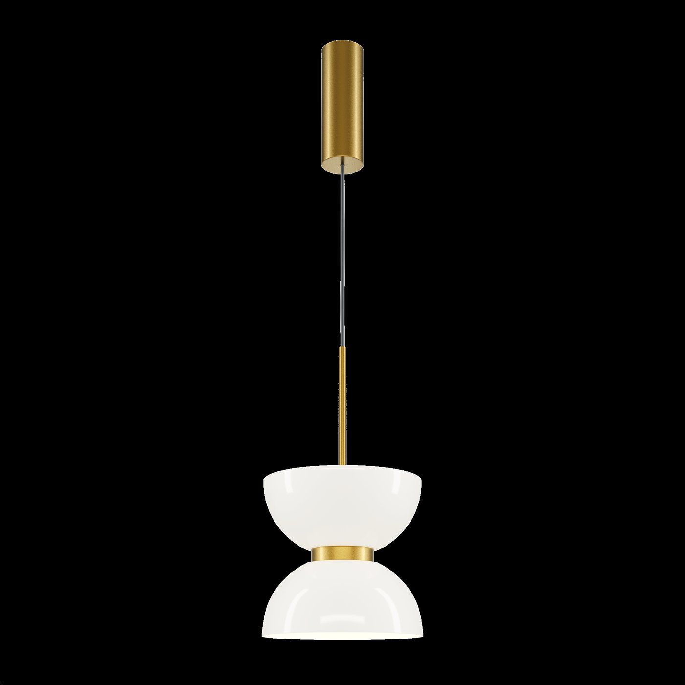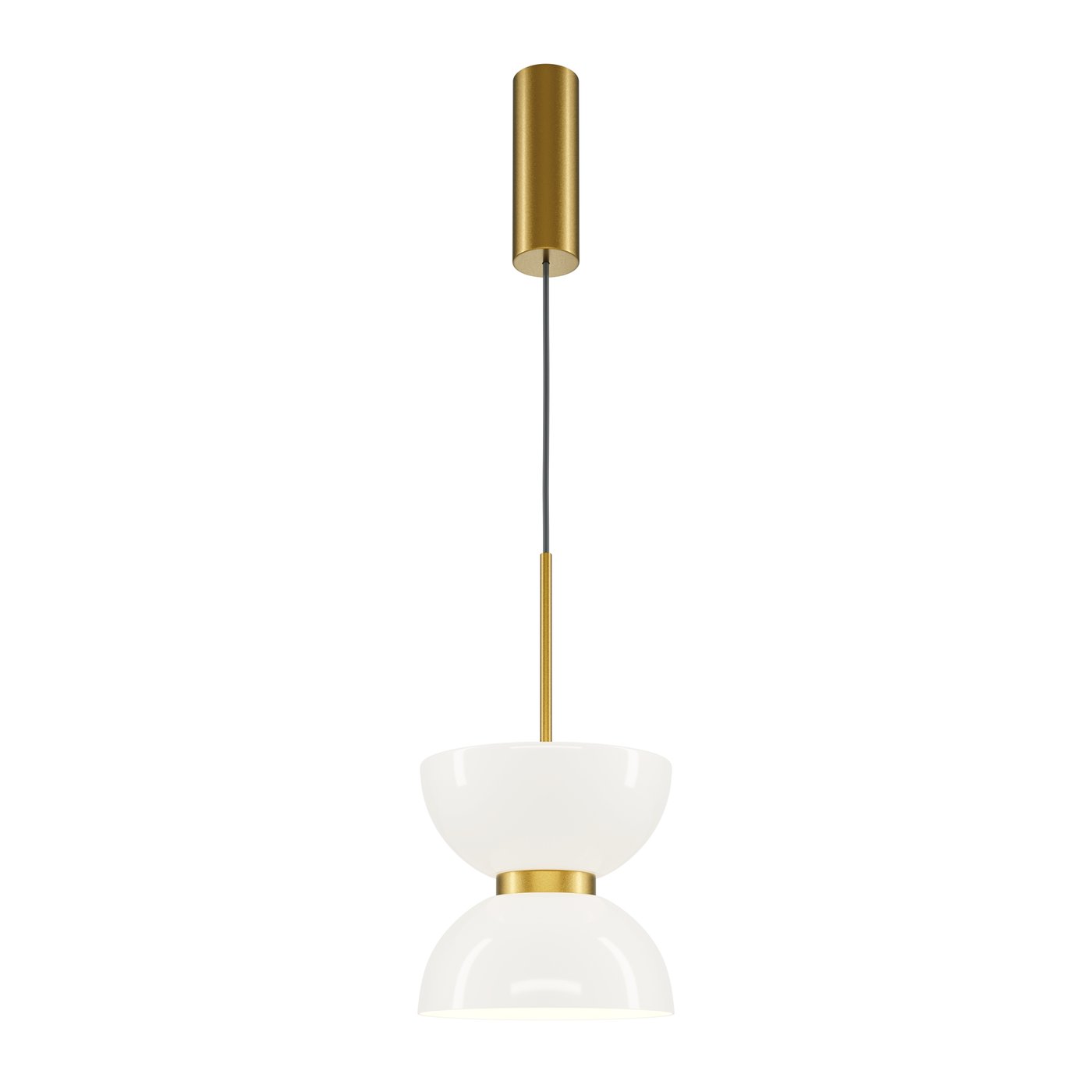 Подвесной светильник Maytoni из коллекции Kyoto сочетает металлическую арматуру в золотом оттенке и плафон из белого стекла с мягко очерченной формой, создающей сбалансированную вертикальную композицию. Диаметр абажура 220 мм позволяет направить свет вниз и одновременно частично рассеять его через матовую поверхность, поэтому модель подходит для локального освещения обеденной зоны или прикроватного пространства. При размещении на высоте 60–80 см над столом поток распределяется равномерно по поверхности без резких теней. Встроенный LED-источник мощностью 11 Вт формирует 1300 лм, что достаточно для комфортной подсветки без перегрузки яркостью. Температура 3000K создаёт тёплый свет для вечернего сценария, а угол рассеивания 120° обеспечивает широкое покрытие рабочей зоны. Регулируемая длина подвеса до 3500 мм упрощает адаптацию к разной высоте потолков, степень защиты IP20 рассчитана на сухие помещения.
