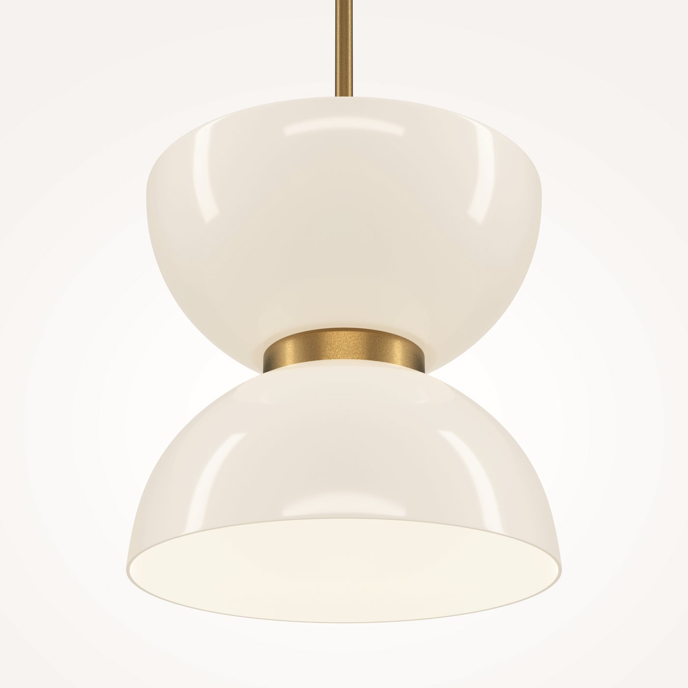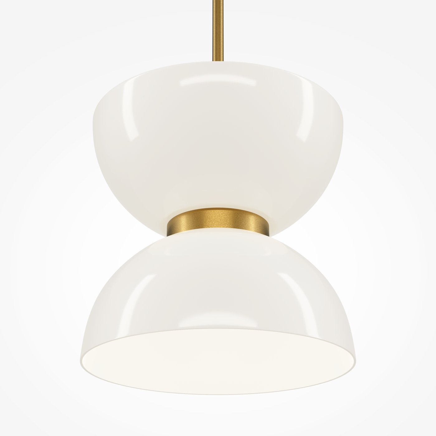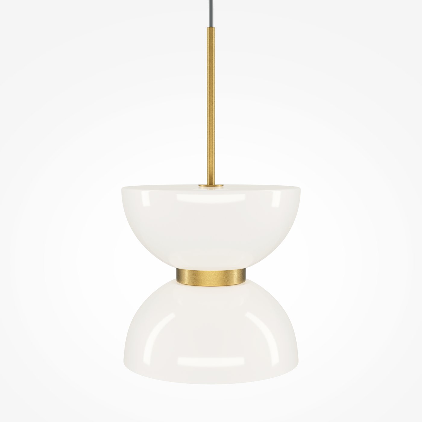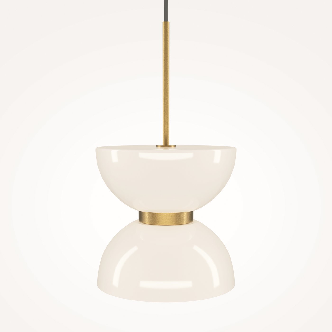 Подвесной светильник Maytoni из коллекции Kyoto сочетает металлическую арматуру в золотом оттенке и плафон из белого стекла с мягко очерченной формой, создающей сбалансированную вертикальную композицию. Диаметр абажура 220 мм позволяет направить свет вниз и одновременно частично рассеять его через матовую поверхность, поэтому модель подходит для локального освещения обеденной зоны или прикроватного пространства. При размещении на высоте 60–80 см над столом поток распределяется равномерно по поверхности без резких теней. Встроенный LED-источник мощностью 11 Вт формирует 1300 лм, что достаточно для комфортной подсветки без перегрузки яркостью. Температура 3000K создаёт тёплый свет для вечернего сценария, а угол рассеивания 120° обеспечивает широкое покрытие рабочей зоны. Регулируемая длина подвеса до 3500 мм упрощает адаптацию к разной высоте потолков, степень защиты IP20 рассчитана на сухие помещения.