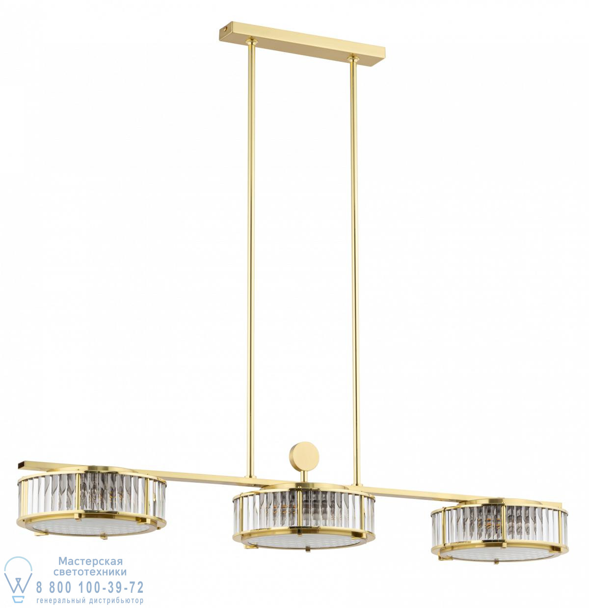 подвесной линейный светильник с тремя цилиндрическими стеклянными плафонами на планке
