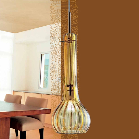 🆔 Подвесной светильник с ребристым стеклянным плафоном янтарного оттенка Athena by Leucos
