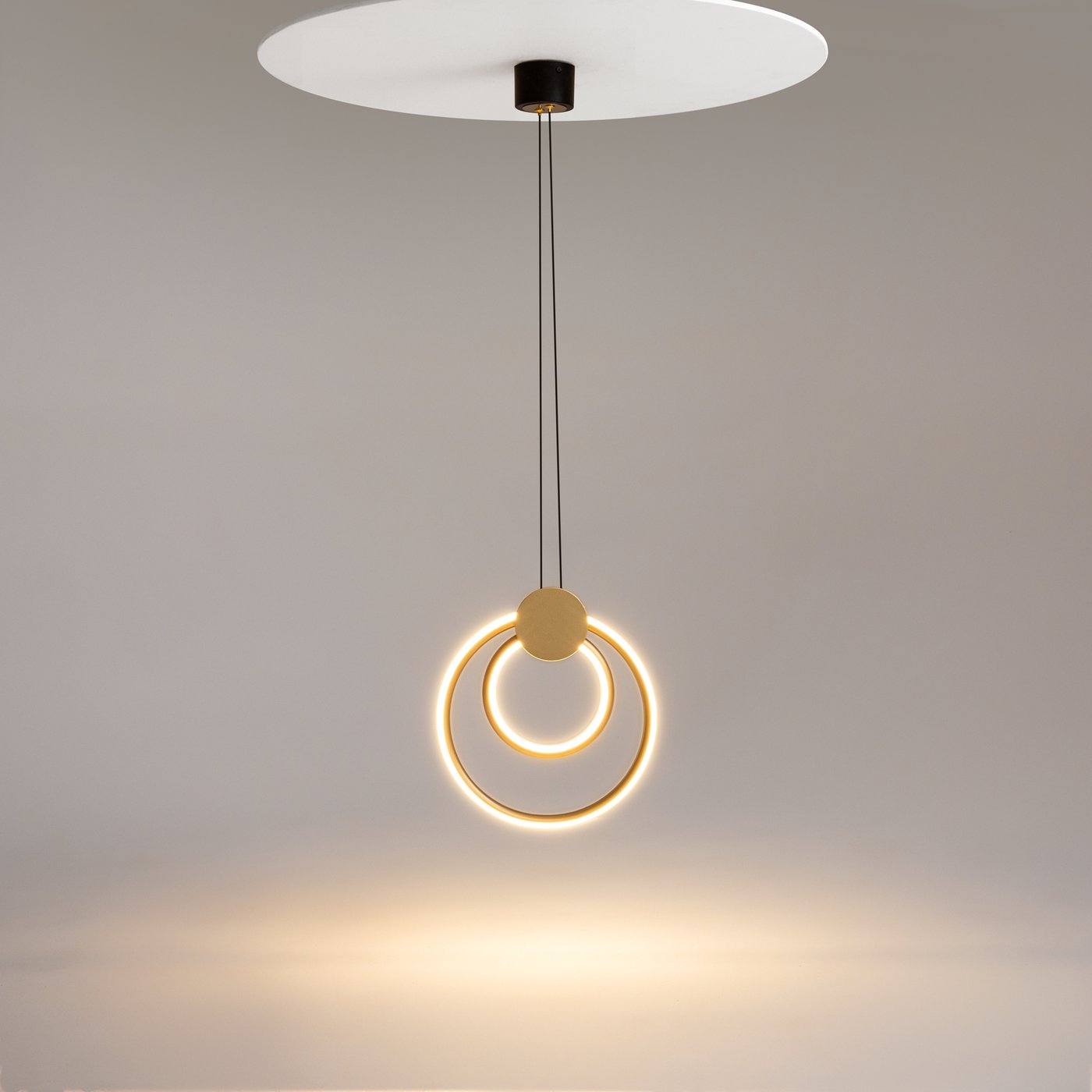Серия светильников Link (англ. - звено) — воплощение идеального сочетания функциональности и эстетики. Декоративные LED-кольца с направленным извне светом обеспечивают высокий световой поток, позволяя использовать их для основного освещения. В серии множество типов светильников с разными вариациями креплений светодиодных колец - удобное решение для создания световых сценариев в помещении. Арматура в цвете латуни с контрастными черными декоративными деталями. Светодиодный источник света скрыт акриловым рассеивателем полупрозрачного белого цвета.