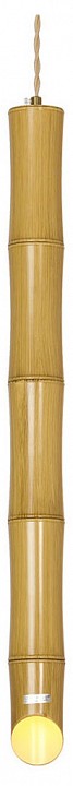 Подвесной светильник предназначен для потолочного монтажа и состоит из одного цилиндрического плафона из металла, окрашенного под бамбук, с матовой поверхностью, закреплённого на металлической арматуре того же цвета. Минимальная высота подвеса регулируется и составляет 760 мм, диаметр плафона 60 мм. Светильник рассчитан на одну лампу GU10, галогеновую или светодиодную, мощностью до 50 Вт с направлением света вниз и возможностью диммирования. Артикул изделия LSP-8563-4, коллекция Lsp-856, производитель Lussole, страна Италия, стиль флористика. На фото видно, что светильник выполнен в вытянутой цилиндрической форме, что позволяет использовать его для точечного освещения в гостиной, кабинете или прихожей.
