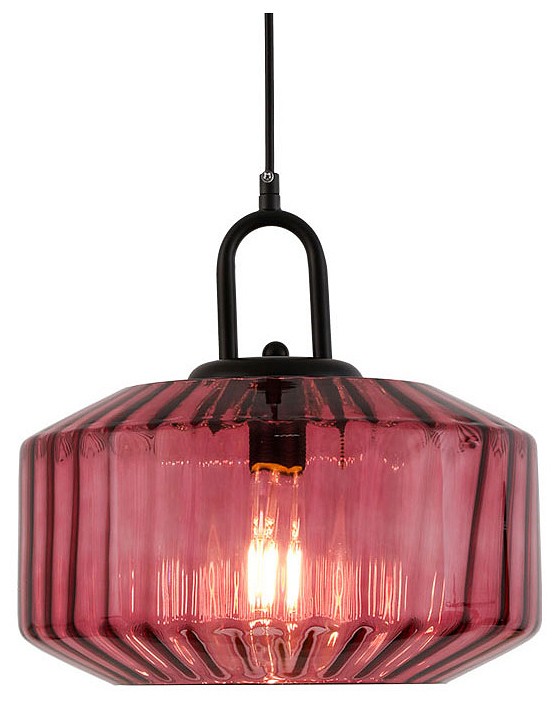 подвесной светильник с граненым стеклянным плафоном бордового цвета