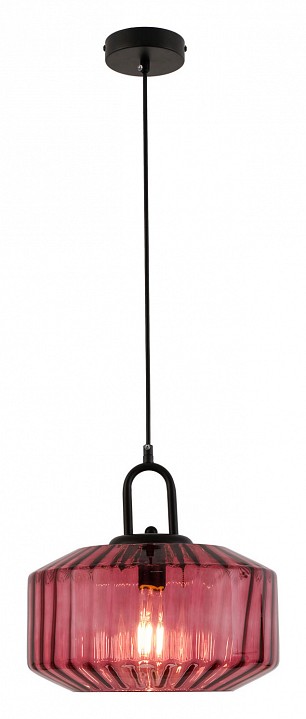 🆔 Подвесной светильник с граненым стеклянным плафоном бордового цвета черный Laredo by Lussole