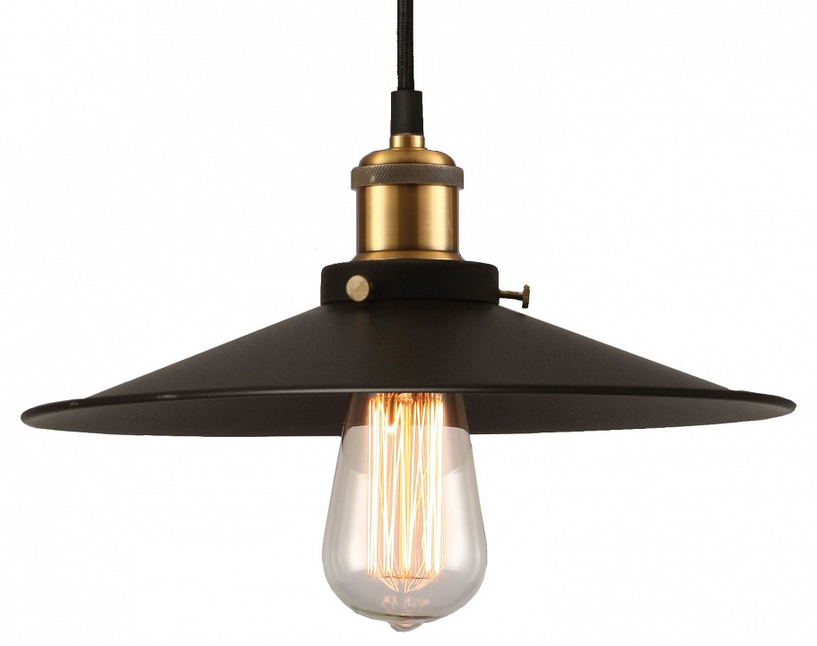 подвесной светильник в индустриальном стиле с широким металлическим плафоном бронзового цвета