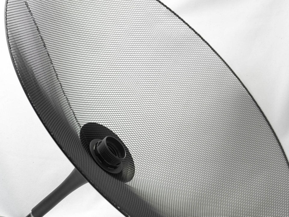 подвесной светильник в форме широкой сетчатой воронки черного цвета