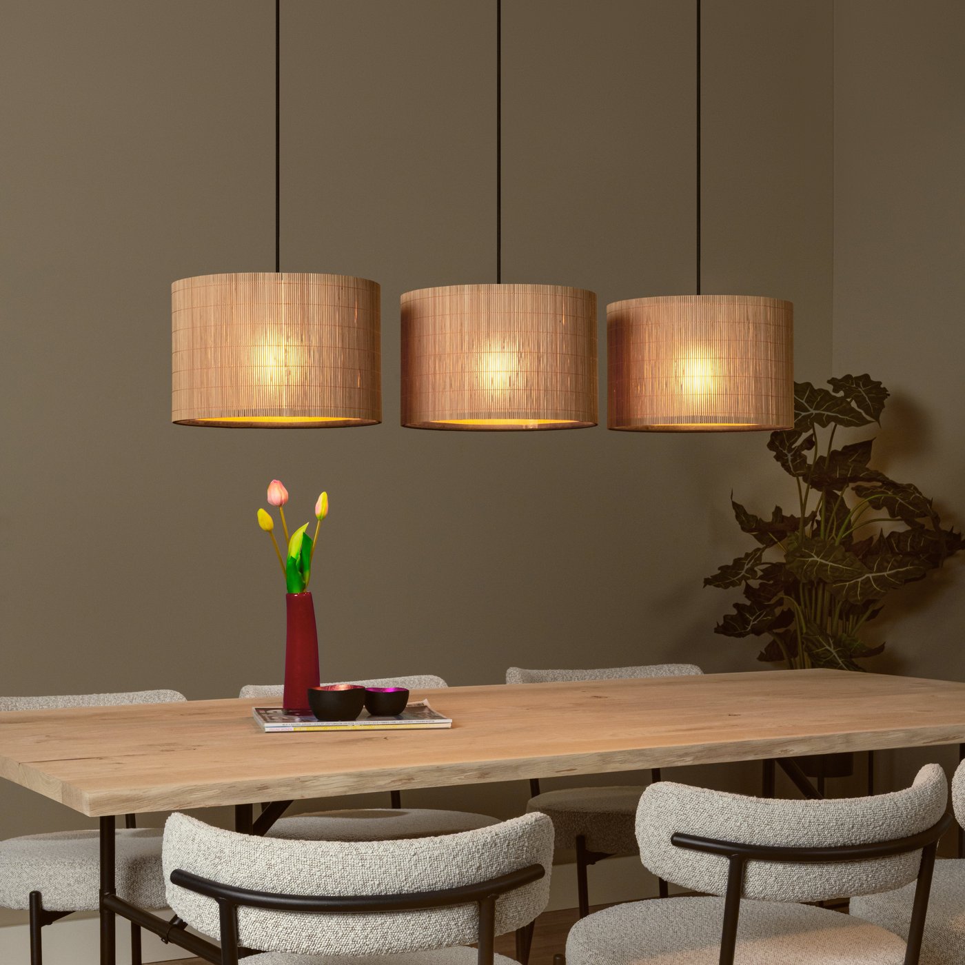 Натуральные материалы как основа для уютного дома. Подвесной светильник Magius легко воплощает этот тренд в жизнь. Более того, он идеально соответствует моде на городские джунгли. Сочетайте Magius по своему вкусу с монстерами и другими модными комнатными растениями, и вы в мгновение ока создадите свой собственный оазис покоя. Предпочитаете более сдержанный вариант? Magius идеально впишется в роль скандинавского акцента вашего современного интерьера. Прежде чем закрепить монтажную пластину на потолке, вы можете легко повесить светильник на нужной высоте. Хотите в полной мере насладиться новым элементом, создающим настроение? Подключите Magius к диммеру.