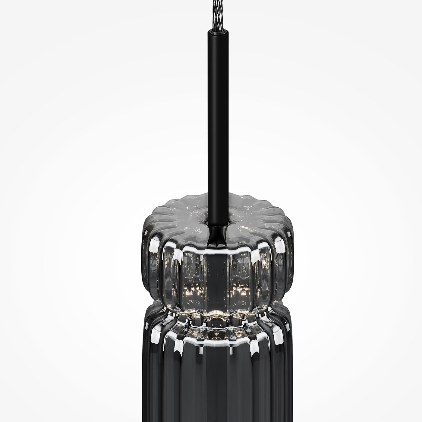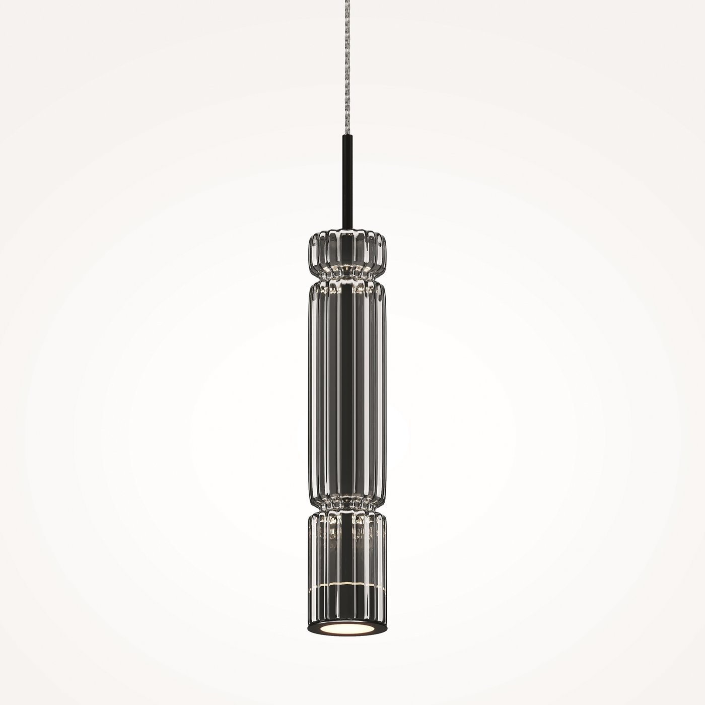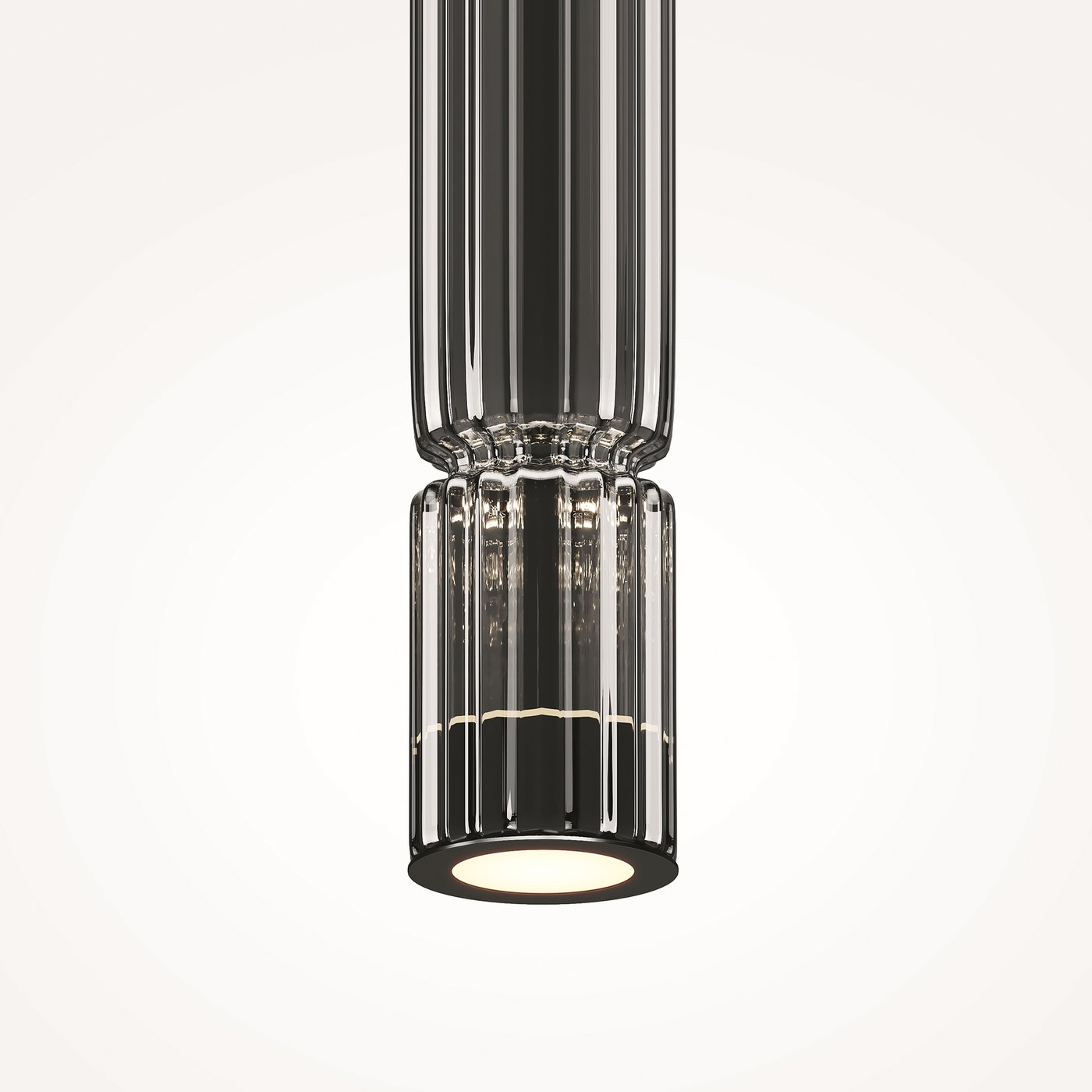 Подвесной светильник с вытянутым цилиндрическим плафоном устроен как вертикальный световой модуль, где стекло с рельефной фактурой работает одновременно как оптика и как фильтр света. В коллекции Ordo у Maytoni эта модель отсылает к форме колонны, но в эксплуатации важнее то, что свет выходит мягко и равномерно по окружности, без жёсткого направленного пучка. В реальном сценарии подвес используют над столом или барной стойкой: при движении рук по поверхности свет не даёт резких теней, а взгляд не натыкается на слепящий источник. За счёт высоты подвеса светильник формирует читаемую вертикаль и визуально связывает потолок с рабочей зоной, не перегружая пространство яркостью. Световой поток 920 лм при мощности 8 Вт достаточен для локального освещения одной зоны, а угол рассеивания 120° позволяет свету выходить широко и спокойно. Тёплая температура 3000 К делает свет комфортным для вечернего использования, а стеклянный плафон с дымчатым оттенком дополнительно смягчает яркость и снижает контраст.