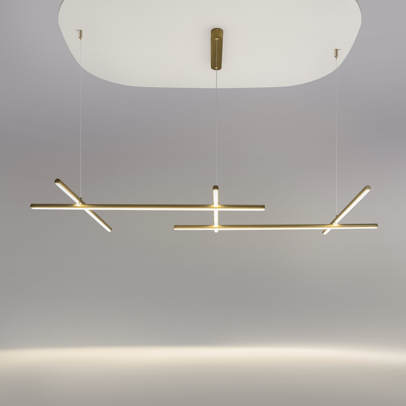 подвесной светильник с перекрещивающимися элементами в золотом цвете