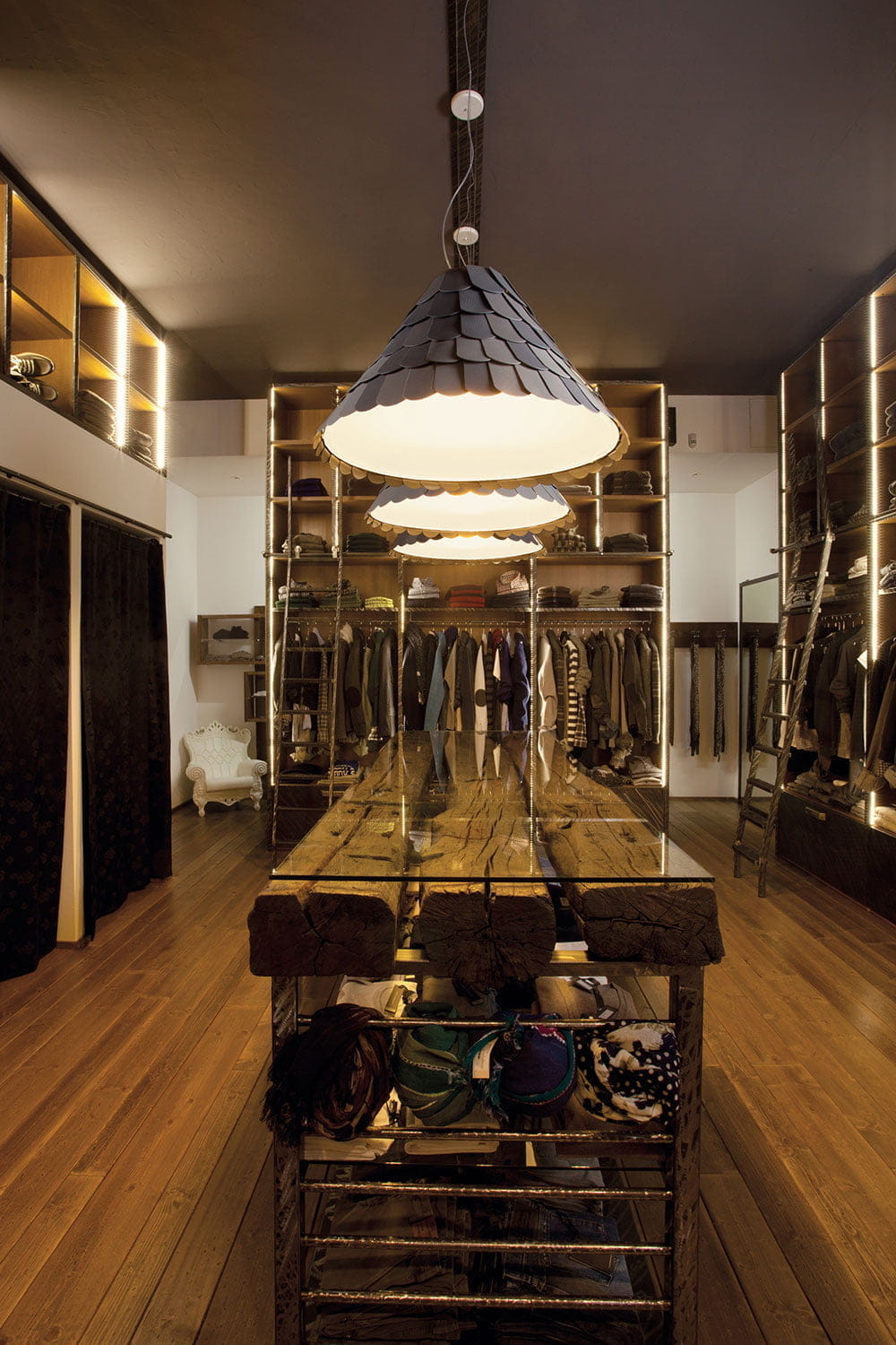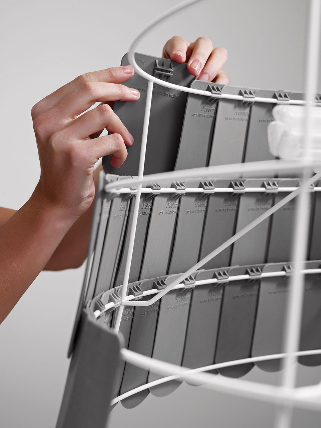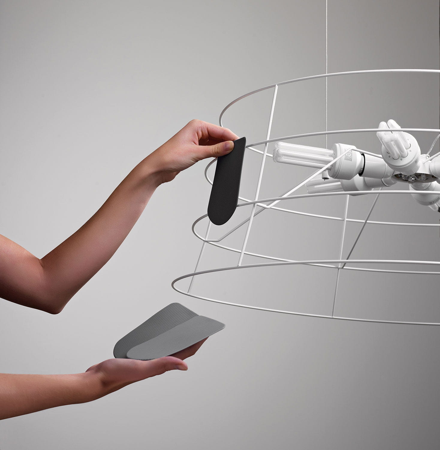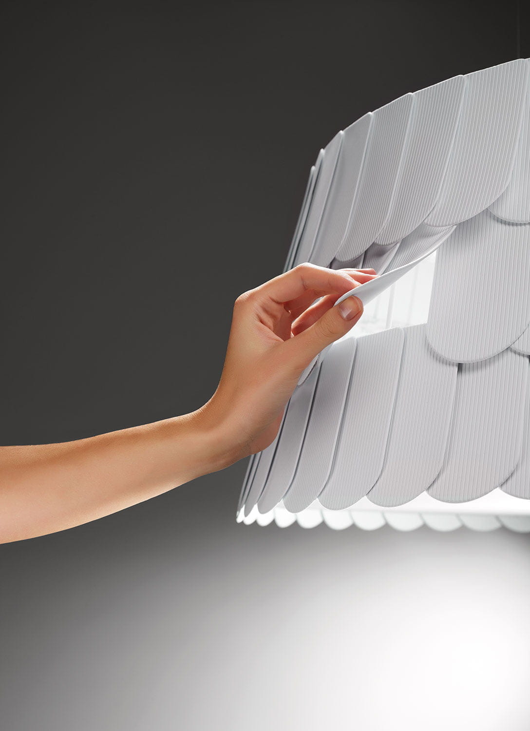 The Roofer pendant lamp is also supplied in a cylindrical shape and brown, green, grey and white finish. It is recommended for decorating the kitchen, the dining table or the meeting room in the office. The lamp is available in three sizes and four finishes (white, grey, brown and green).