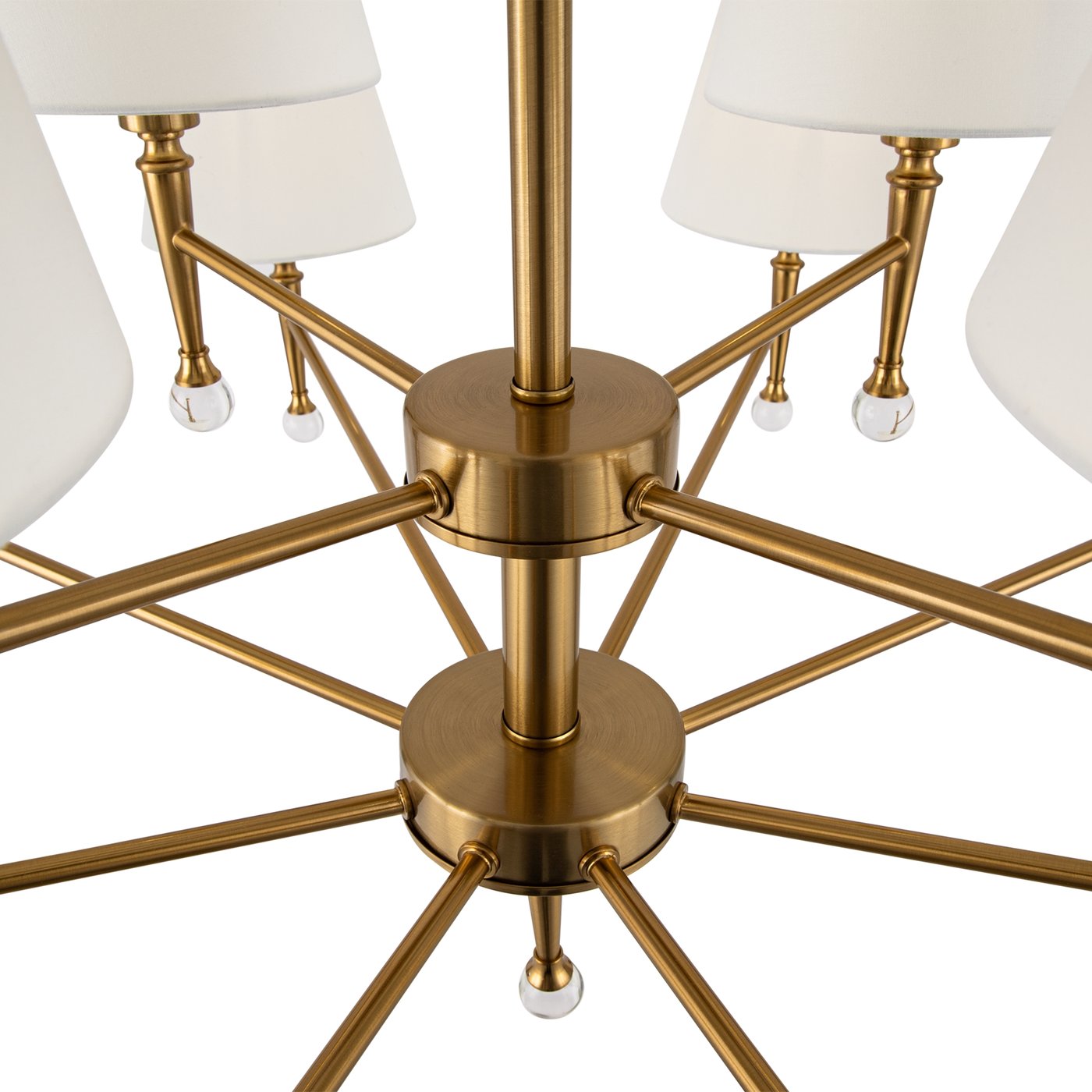 подвесная люстра с двенадцатью белыми абажурами на латунной основе