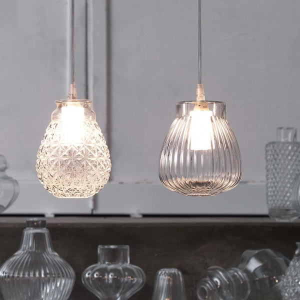 подвесной светильник с прозрачным стеклянным плафоном каплевидной формы