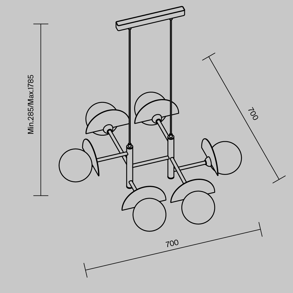 подвесной светильник с несколькими стеклянными шарами на чёрной основе