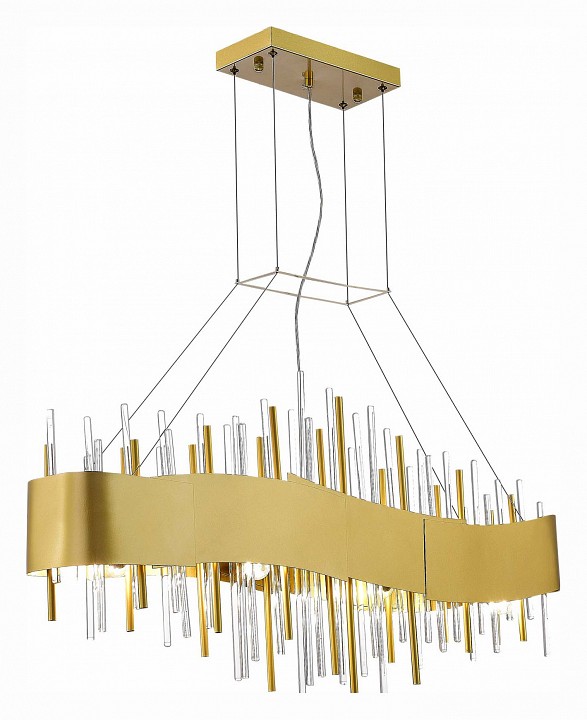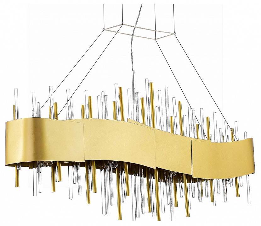🆔 Подвесная люстра с золотым металлическим каркасом и вертикальными элементами золотой Olvera by ST-Luce