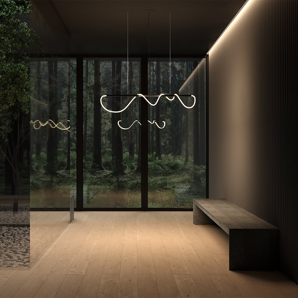 Светильники серии Tau (с нем. - веревка) отвечают актуальному тренду на использование гибкого неона в качестве рассеивателя. В серии представлены подвесные, потолочные, настенные и напольные светильники, с рассеивателем из гибкого силиконового неона и неонового жгута, с высокой плотностью светодиодов. Они создают мягкий, рассеянный свет вокруг, а благодаря технологичному дизайну в черном и латунном цвете арматуры идеально подойдут в современные, минималистичные интерьеры.