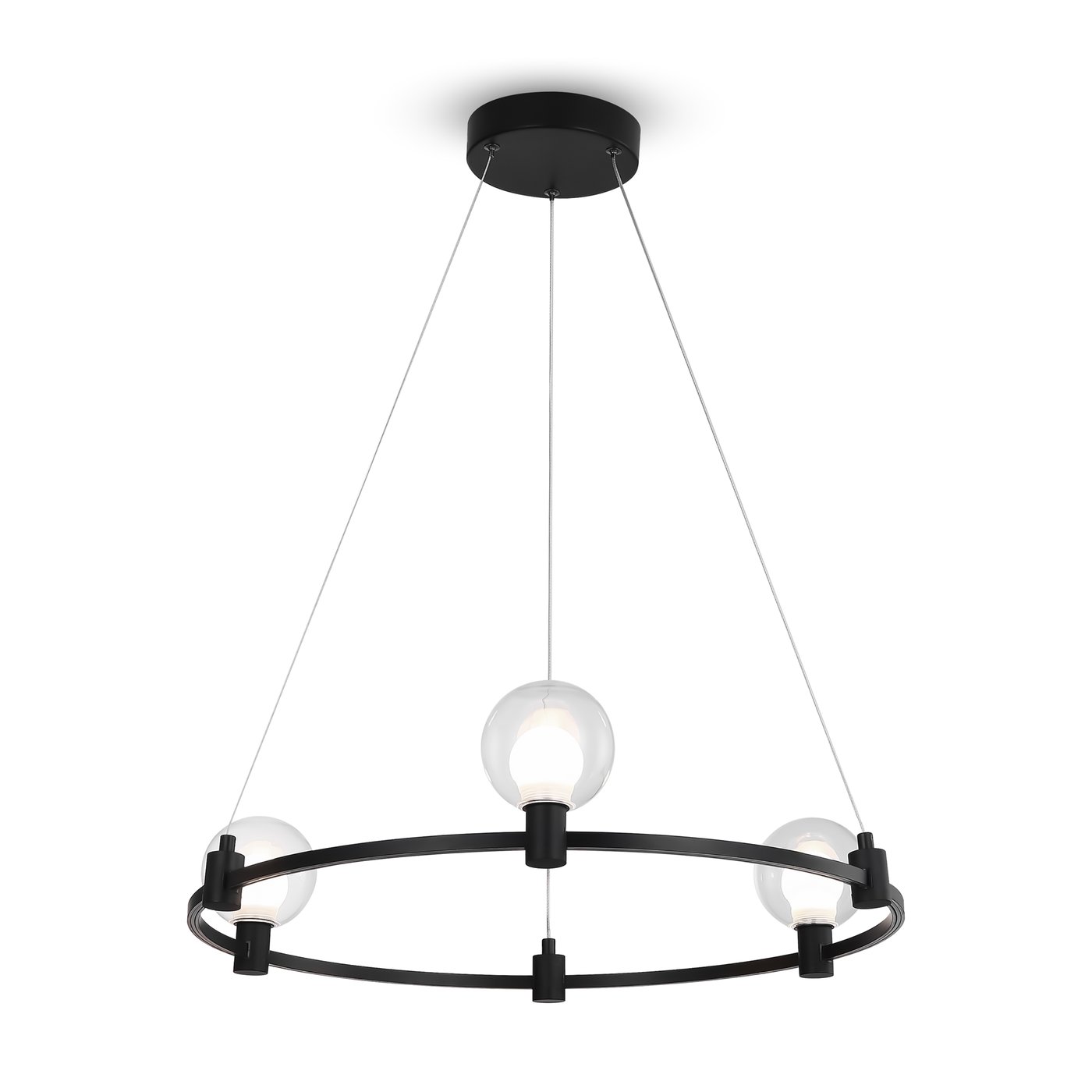 🆔 Подвесной светильник с металлическим кольцом и тремя сферическими плафонами черный Urban by Freya