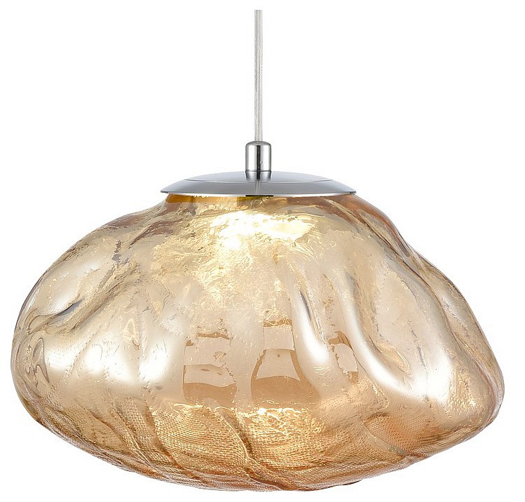 🆔 Подвесной светильник с полупрозрачным стеклянным плафоном янтарного оттенка хром Isola by Wertmark