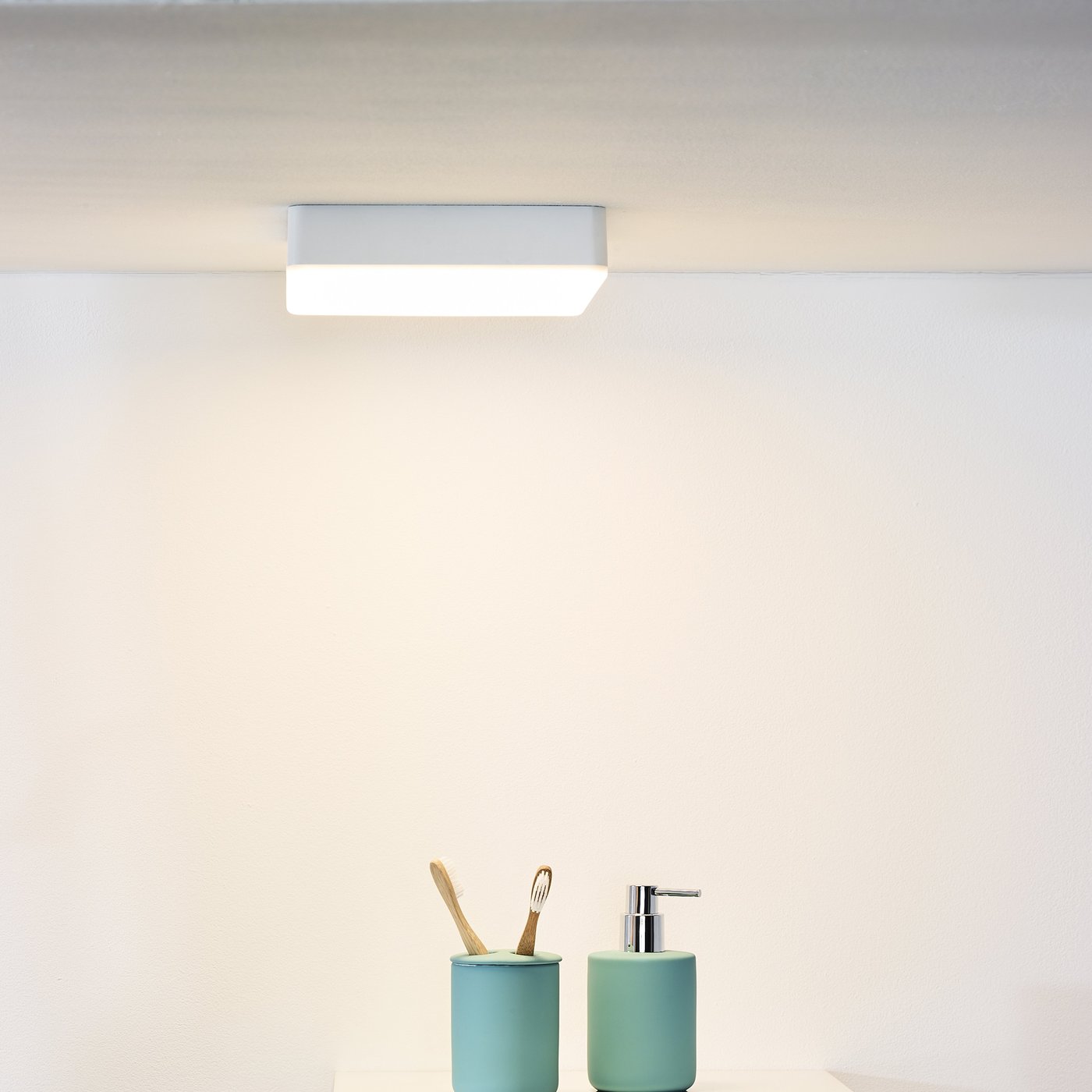 Симметричный маяк света для вашей ванной комнаты? Этот квадратный потолочный светильник Ceres оснащён встроенной светодиодной подсветкой с регулировкой яркости. Спешите по утрам или наслаждаетесь горячей ванной в выходные? Подключите Ceres к диммеру, и вы всегда сможете создать нужное настроение. Просто прикрутите монтажную пластину к потолку, чтобы получить аккуратный светильник. Ceres специально разработан для безопасного использования в ванной комнате.