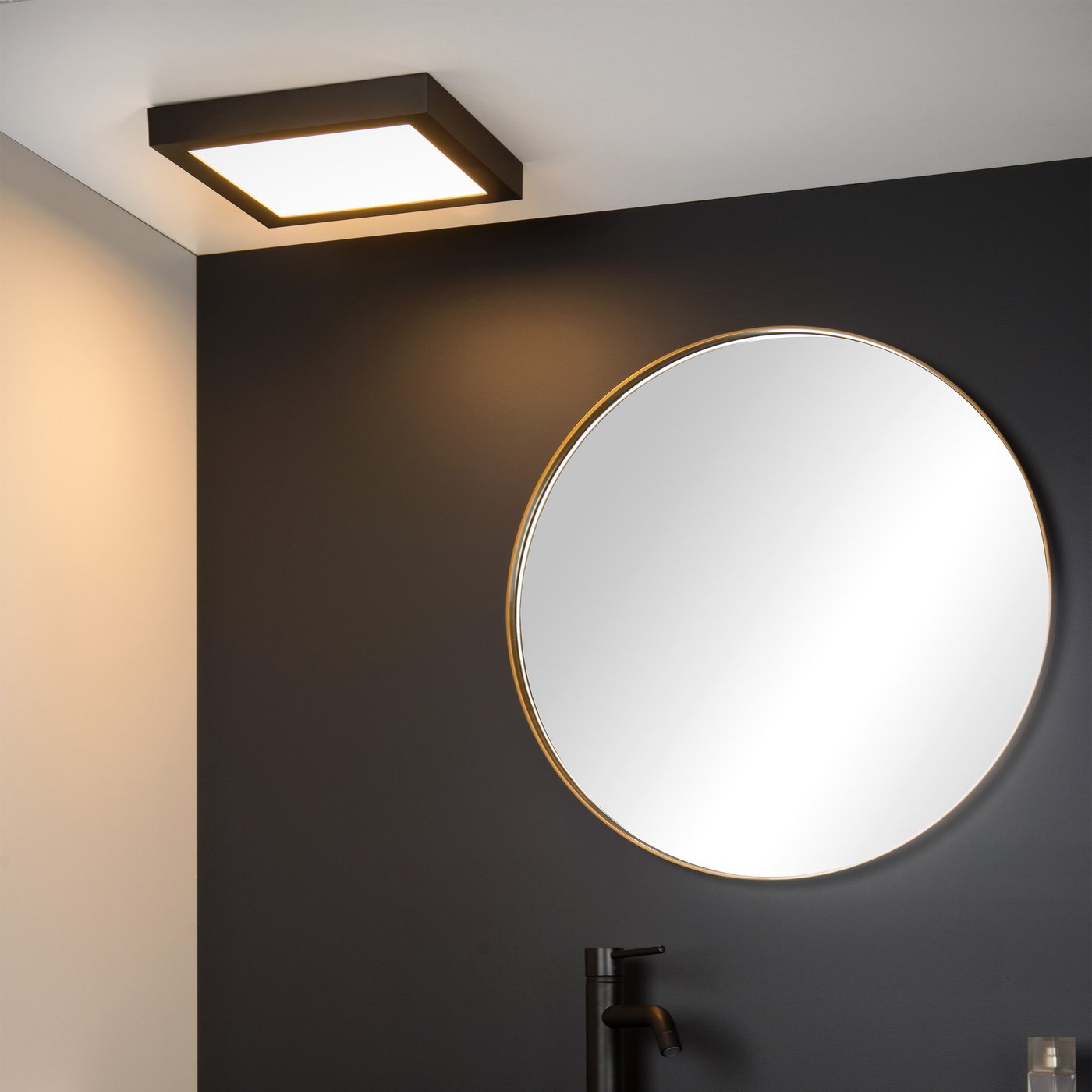 🆔 Потолочный светильник квадратной формы с матовой подсветкой, подходит для ванной черный BRICE-LED by Lucide