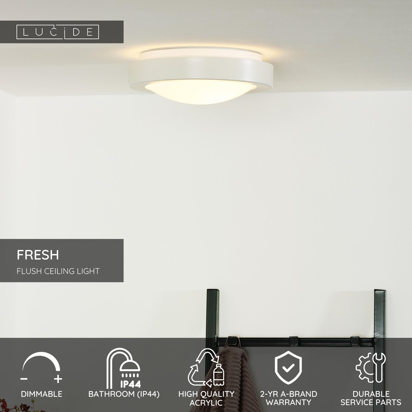 Потолочный светильник Fresh от Lucide полностью оправдывает своё название! Благодаря дизайну Fresh и толщине 9,5 см светильник идеально впишется в любой потолок. Кроме того, благодаря уровню защиты IP 44, Fresh можно разместить в ванной комнате. Матовое хромированное или матово-белое покрытие обеспечит безупречный внешний вид. Цоколь E27 позволяет использовать энергосберегающие лампы.