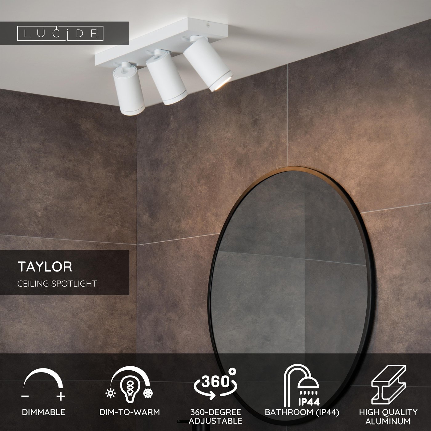 🆔 Потолочный светильник для ванной с тремя направленными плафонами белого цвета белый TAYLOR by Lucide