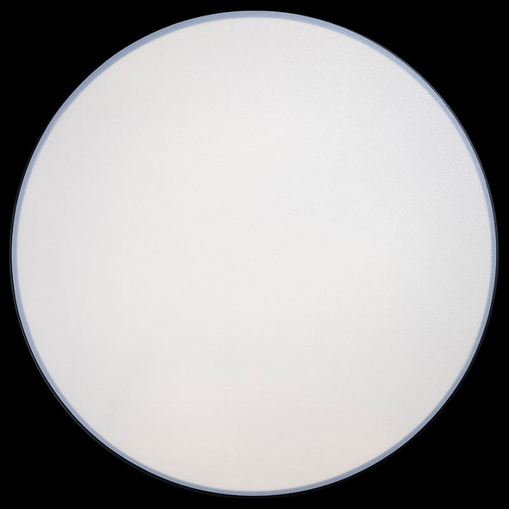 Потолочный светильник круглой формы предназначен для накладного монтажа и имеет высоту всего 50 мм при диаметре 600 мм, что позволяет установить его вплотную к потолку. Конструкция состоит из металлической арматуры чёрного цвета и полимерного рассеивателя, закрывающего встроенный светодиодный источник. Мощность составляет 48 Вт, цветовая температура — 4000 К, световой поток достигает 3900 лм, что делает модель основным источником освещения для помещения площадью до 24 м². Свет направлен вниз, диммирование не предусмотрено. Контраст между чёрным корпусом и белым плафоном подчёркивает форму и границу светящегося элемента.