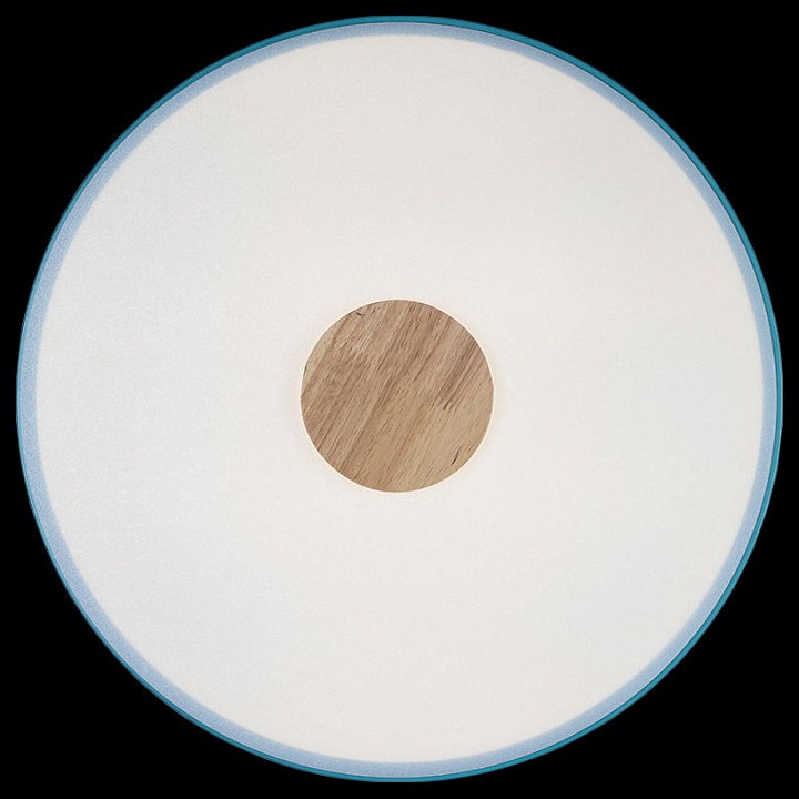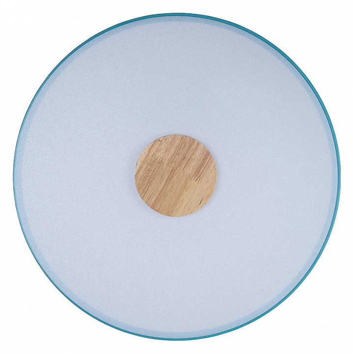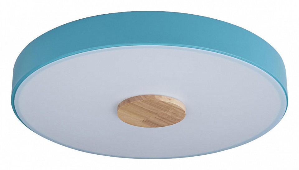 Потолочный светильник Loft It из коллекции Axel рассчитан на установку на потолке с креплением на монтажной пластине. Круглый корпус диаметром 400 мм и высотой 50 мм дополнен белым матовым полимерным плафоном, направленным вниз, и голубой матовой арматурой по боковой части. В центре плафона расположена круглая деревянная вставка, при этом материал арматуры указан как дерево и металл. Встроенный светодиодный источник входит в комплект, его мощность составляет 24 Вт, световой поток — 1800 лм, цветовая температура — 4000 К. Светильник работает от 220 В, не поддерживает диммирование, имеет степень защиты IP20 и заявленную площадь освещения 12 м².