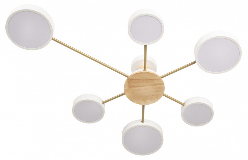 🆔 Потолочный светильник с белыми кольцевыми плафонами на золотом основании белый, дерево Sunrise by Loft It